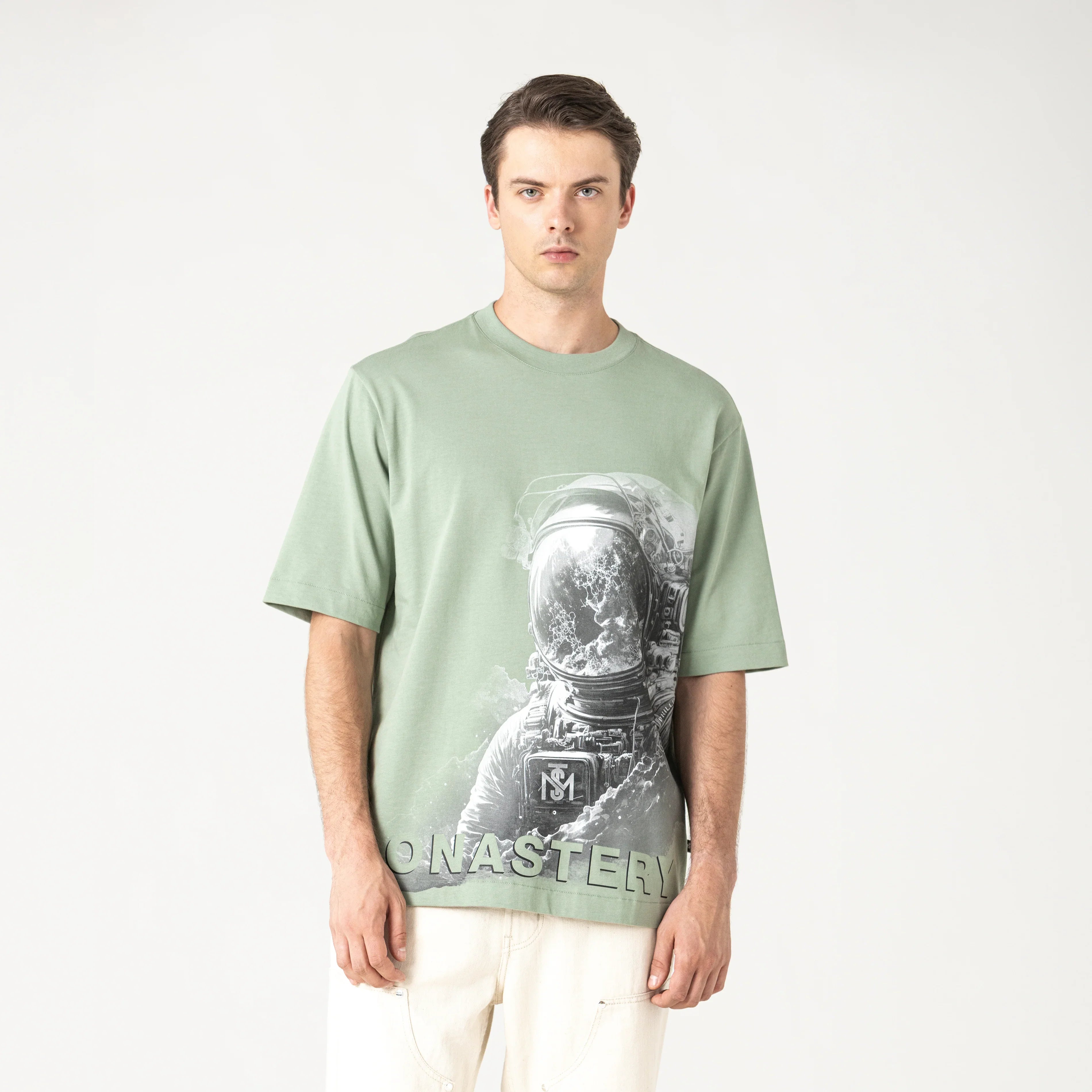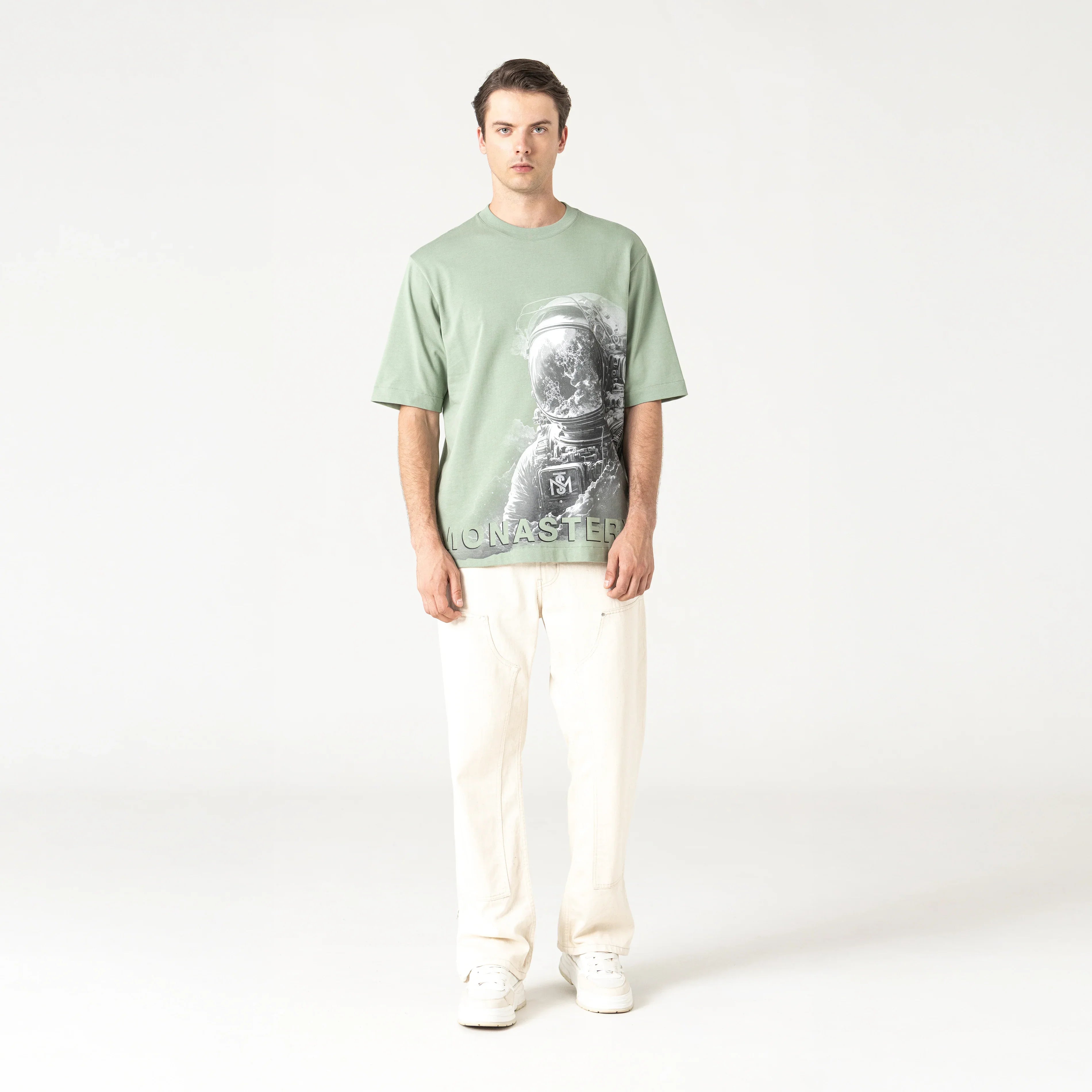 Camiseta oversized para hombre, elaborada en 100% algodón exclusivo para Monastery. En frente presenta nuestro icónico astronauta Phillip en técnica de tramas y en espalda los logos insignia en alta densidad. Venture es un básico oversize perfecto para ser combinado con tu armario.