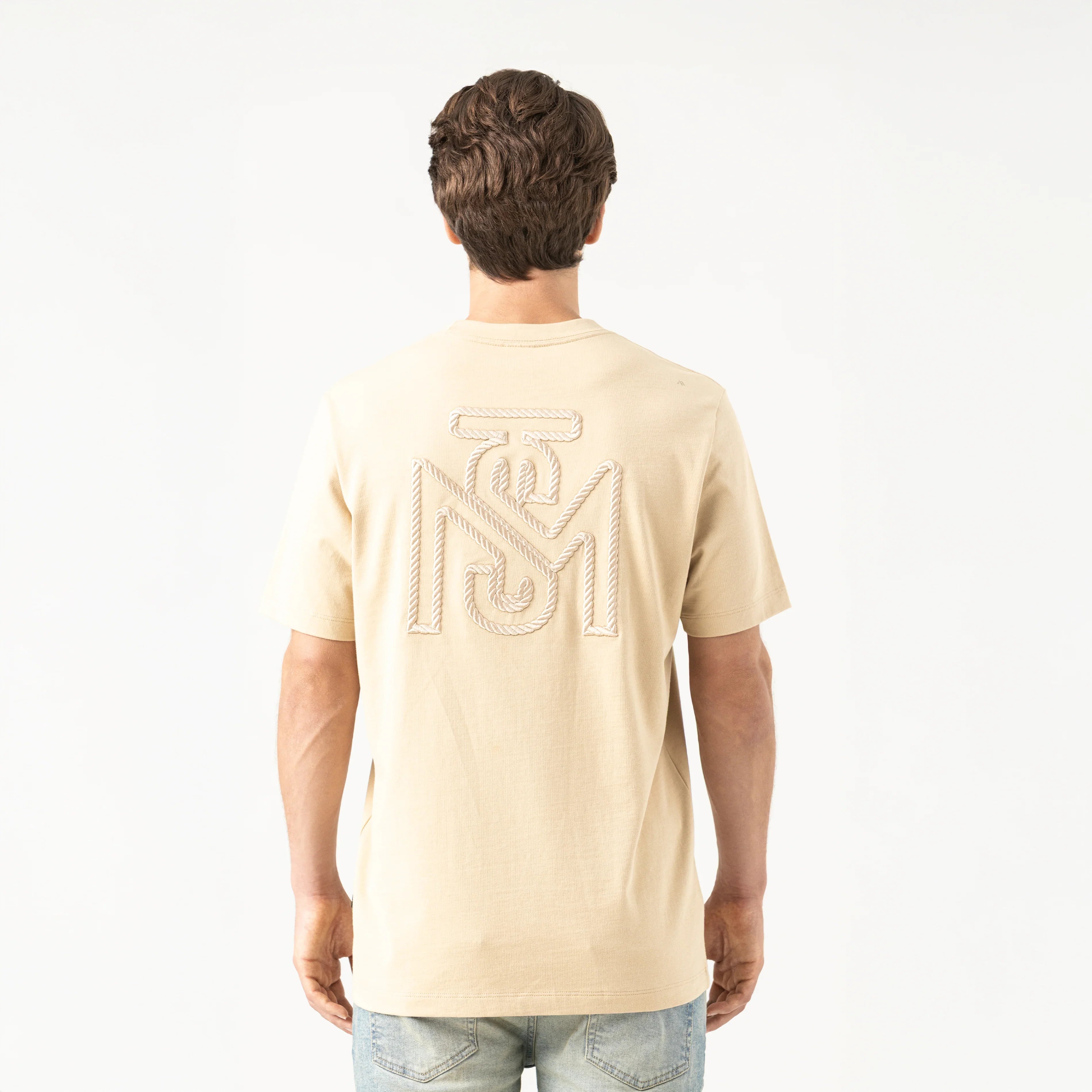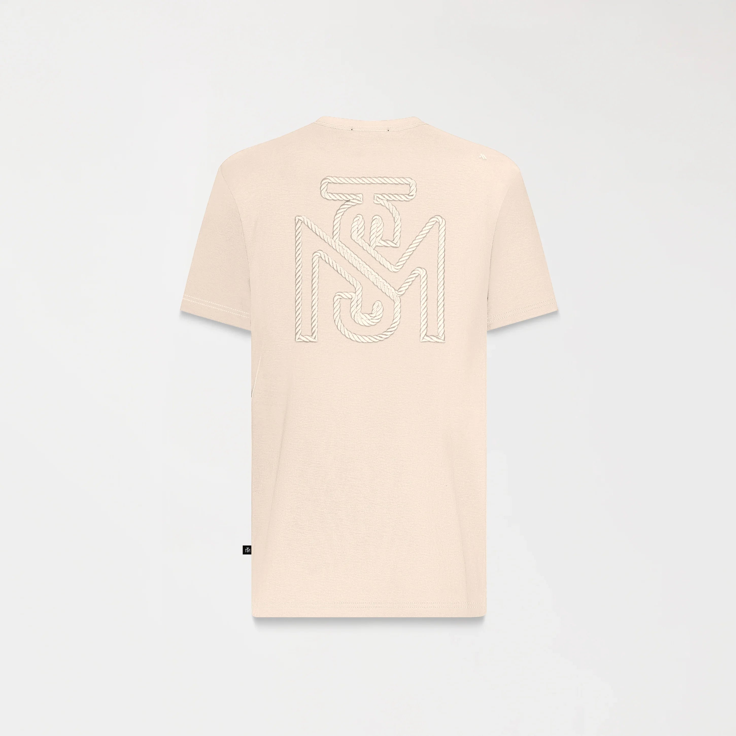 Friesian es una t-shirt masculina de silueta regular, confeccionada en algodón 100% de alta calidad. Su diseño incorpora un cuello en rib de 2.5 cm que aporta estructura y equilibrio. En el frente, la combinación de bordado efecto cuerda y bordado plano genera un contraste visual y táctil refinado, mientras que en la espalda, un logo de gran escala reproduce esta mezcla de técnicas con fuerza y profundidad. Una pieza concebida para quienes reconocen la artesanía como sello de distinción.