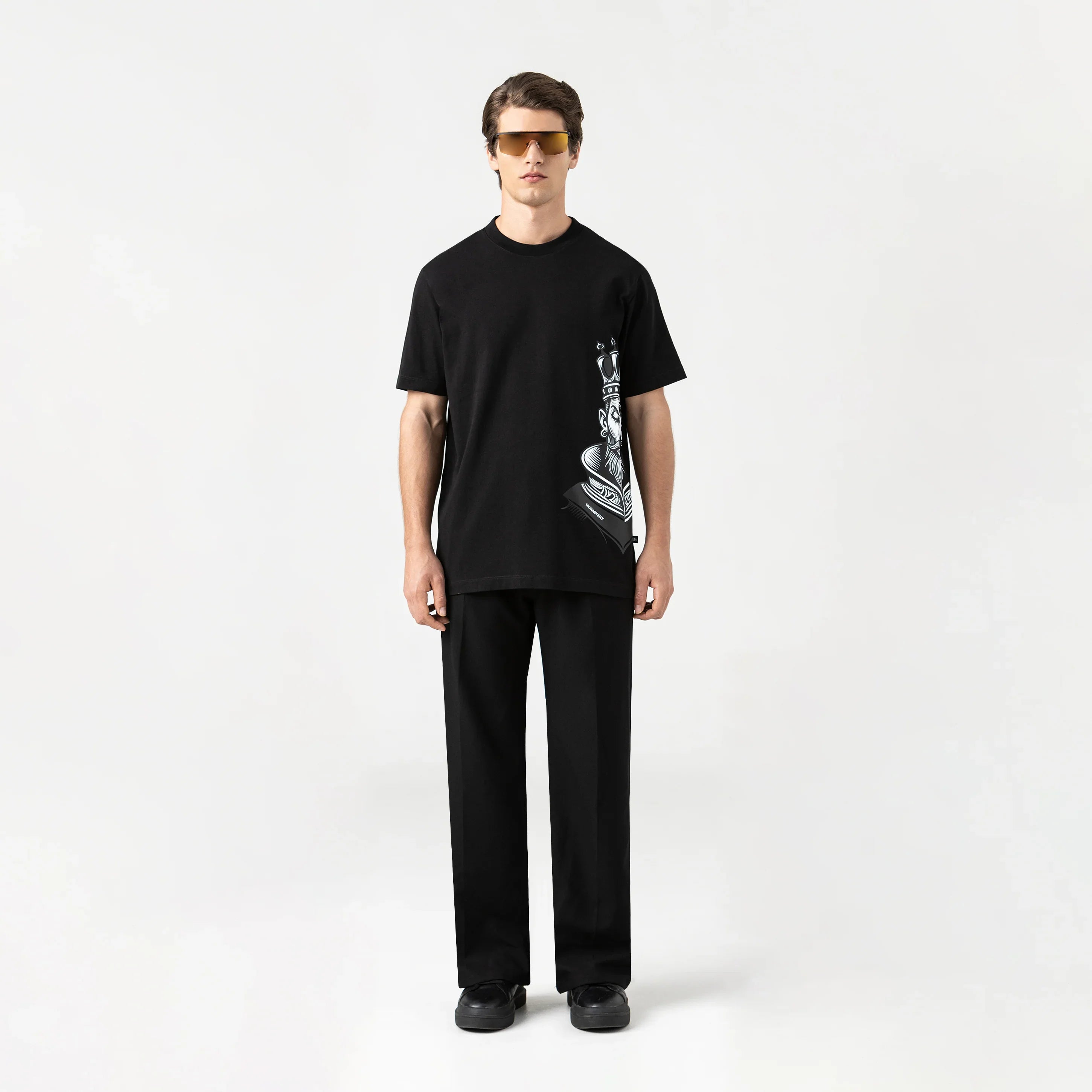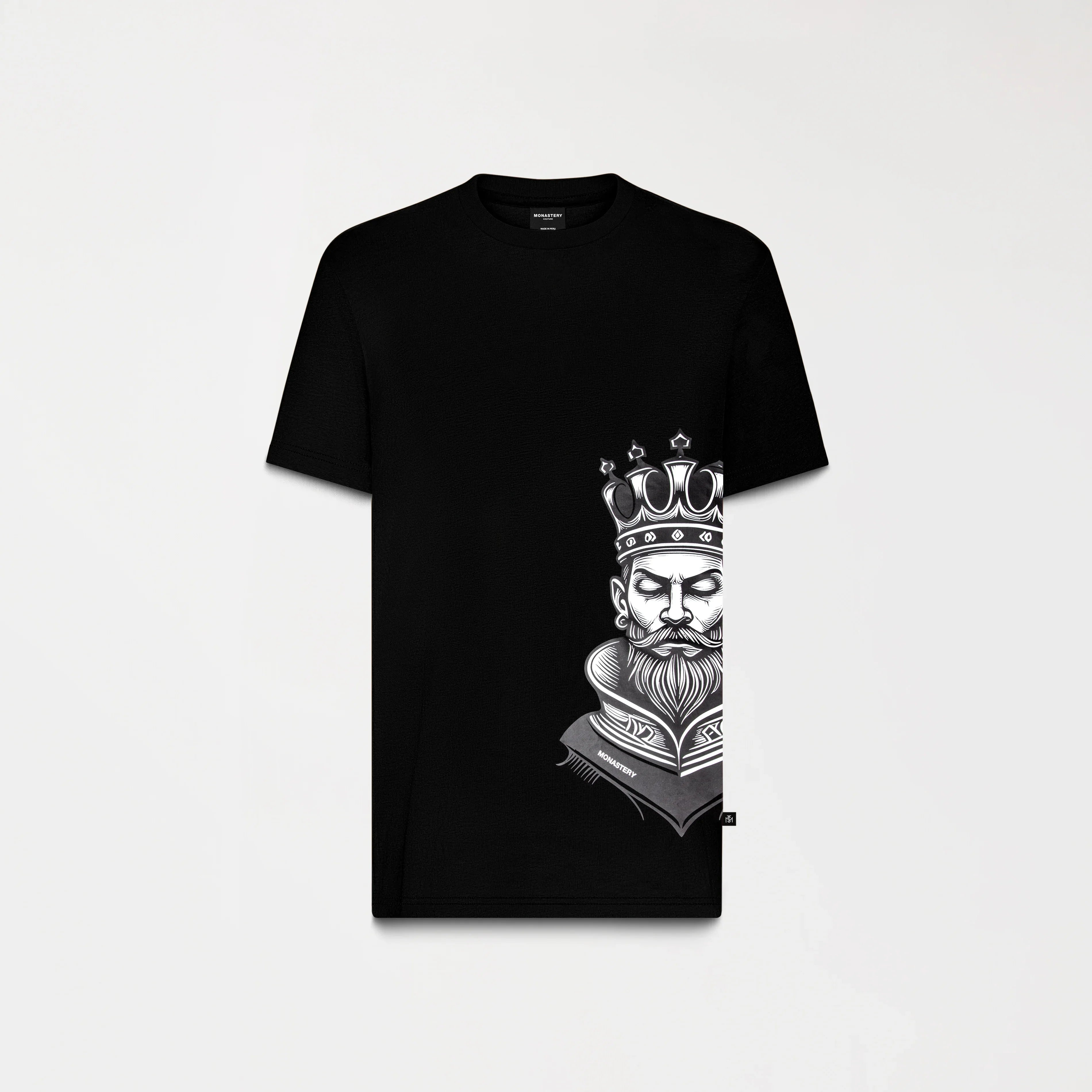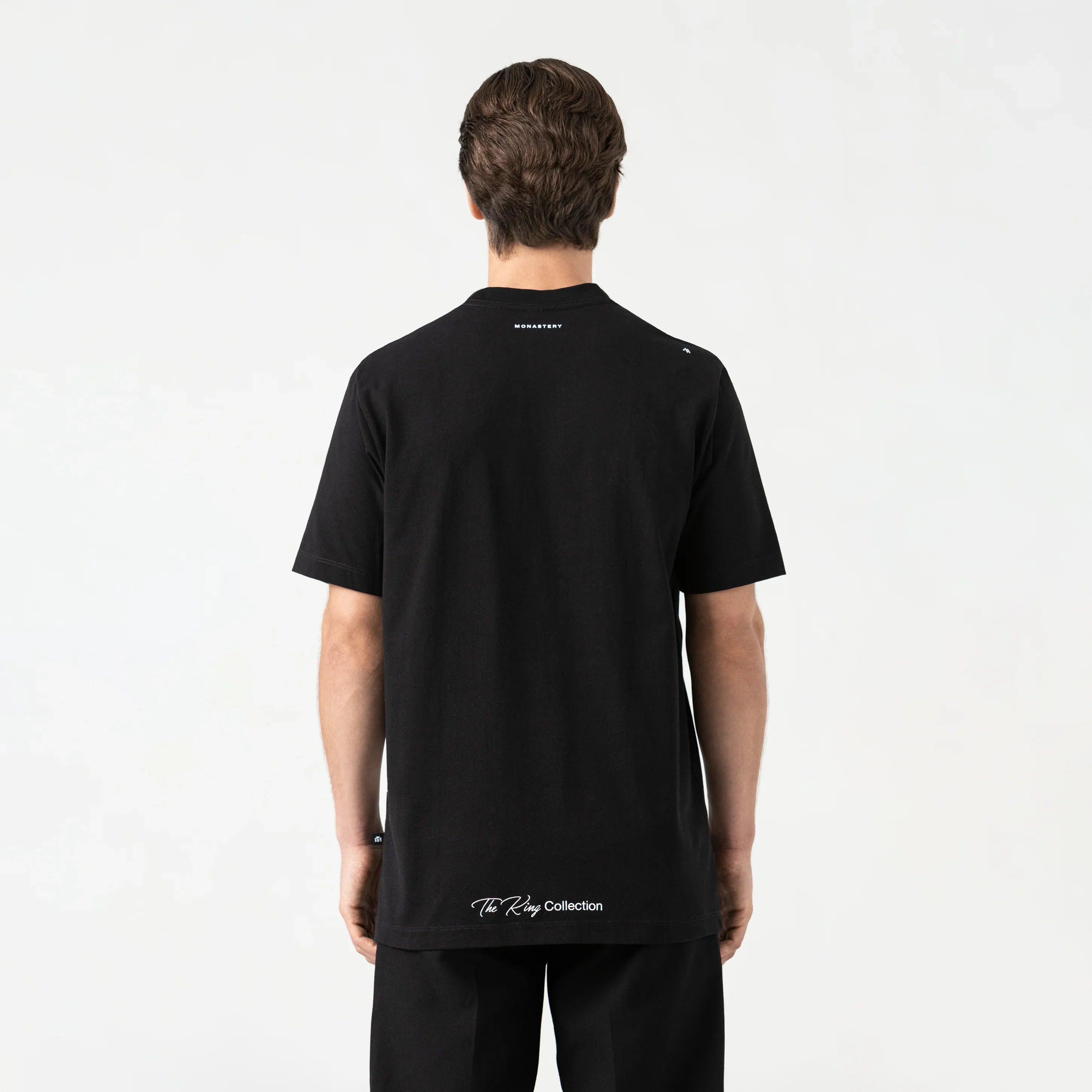Es una camiseta masculina de silueta regular que transmite fuerza y precisión en cada detalle. Confeccionada en te Monastery, ofrece una estructura firme y un tacto suave, ideal para un fit cómodo y con presencia. El diseño incluye un cuello en rib de 2.5 cm que refuerza su carácter. En el frente y la espalda, se destacan estampados en plastisol con acabado mate tipo transfer, que aportan una textura sutil y una estética de bajo brillo, ideal para quienes prefieren una gráfica sofisticada sin exceso de brillo. Una prenda que combina técnica y estilo para un look que impone respeto sin esfuerzo.