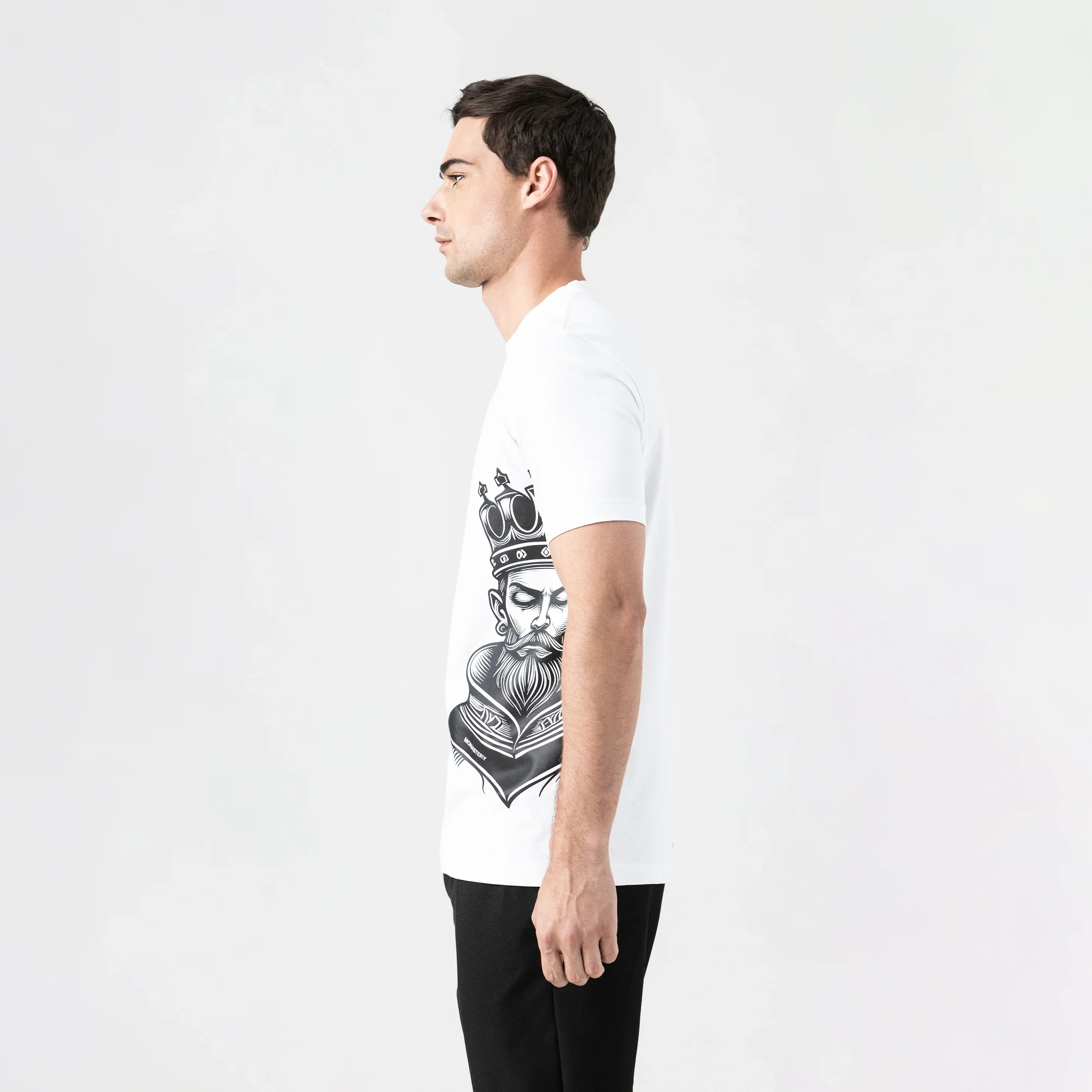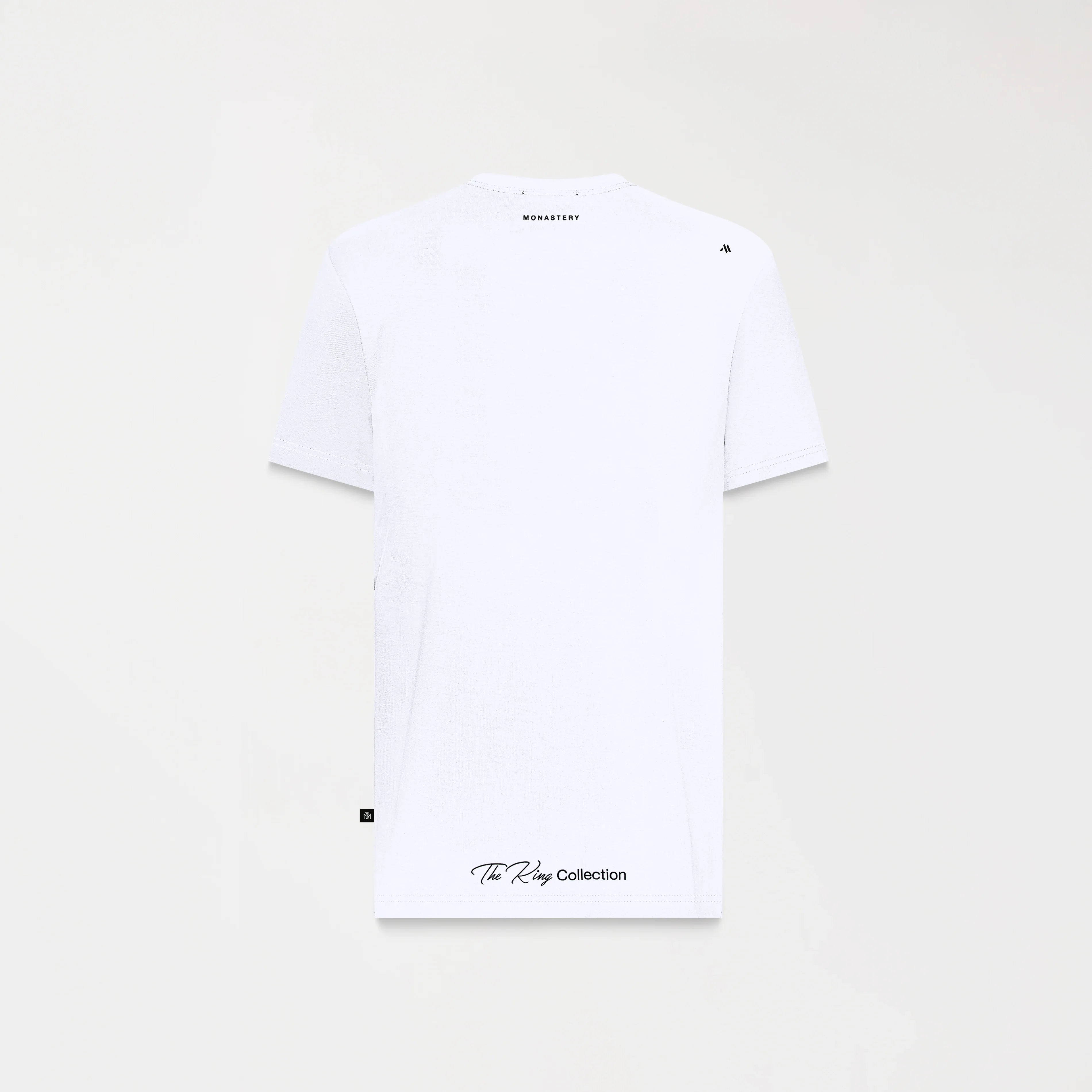 Es una camiseta masculina de silueta regular que transmite fuerza y precisión en cada detalle. Confeccionada en te Monastery, ofrece una estructura firme y un tacto suave, ideal para un fit cómodo y con presencia. El diseño incluye un cuello en rib de 2.5 cm que refuerza su carácter. En el frente y la espalda, se destacan estampados en plastisol con acabado mate tipo transfer, que aportan una textura sutil y una estética de bajo brillo, ideal para quienes prefieren una gráfica sofisticada sin exceso de brillo. Una prenda que combina técnica y estilo para un look que impone respeto sin esfuerzo.