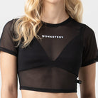 Crop top women en una malla exclusiva para Monastery, elaborada en silueta pequeña, Hazel presenta un estampado plano de logo marca Monastery en centro pecho y cuenta con una placa metálica Monastery en la espalda, este fino detalle amplia el estilo de esta referencia, brindando un aspecto mas sofisticado.