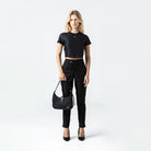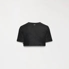 Monastery Crop top con cuello sesgo, elaborado en nuestra base textil Seul, esta base textil es exclusiva para Monastery, es marcado al calorcon un patron hecho especialmente para la marca. Esmme cuenta con una placa metalica a la altura del busto de nuestro logo Tsm y en posterior con nuestro logo Monastery, ambasplacas cuentan con un baño en plata añadiendo brillo y elegancia a la prenda. Esta prenda resalta la identidad de la marca atravez de cada uno de sus detalles.