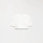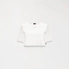 Monastery Crop top con cuello sesgo, elaborado en nuestra base textil Seul, esta base textil es exclusiva para Monastery, es marcado al calorcon un patron hecho especialmente para la marca. Esmme cuenta con una placa metalica a la altura del busto de nuestro logo Tsm y en posterior con nuestro logo Monastery, ambasplacas cuentan con un baño en plata añadiendo brillo y elegancia a la prenda. Esta prenda resalta la identidad de la marca atravez de cada uno de sus detalles.