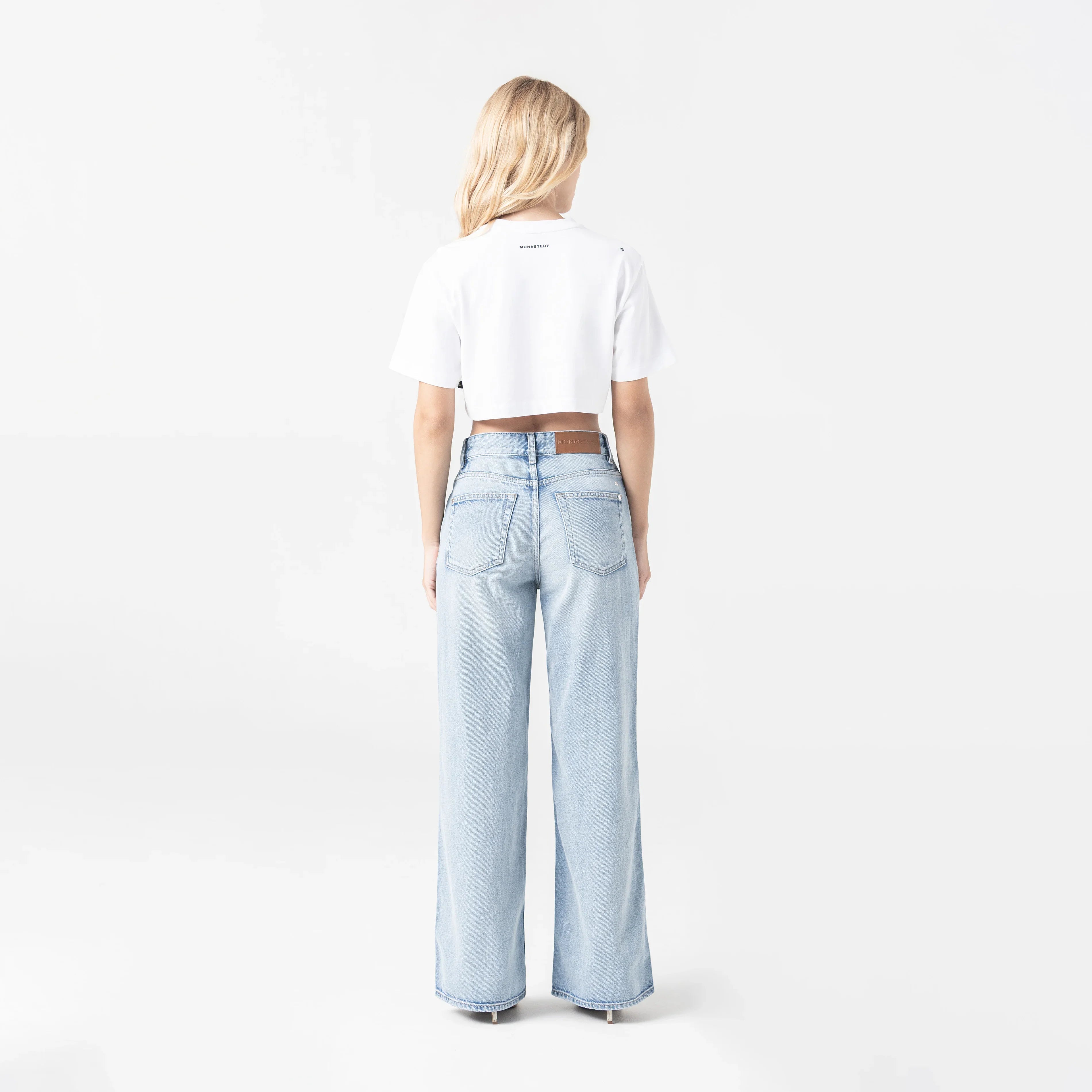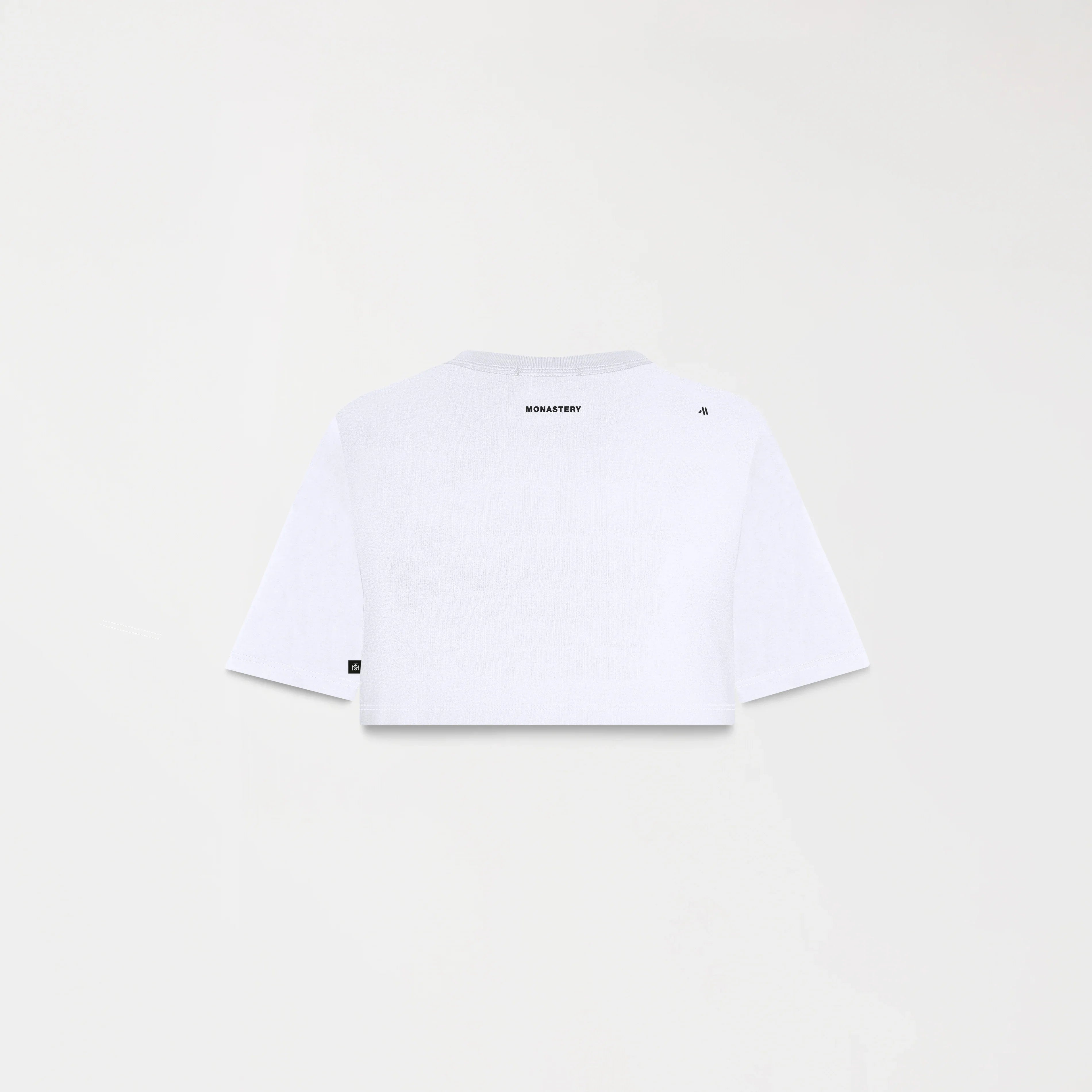 Crop top de silueta pequeña confeccionado en algodón peruano de alta calidad. La referencia Kelyn presenta un estampado plano en vinilo al frente y logos tradicionales en la parte posterior aplicados en técnica de alta densidad, ofreciendo un diseño versátil, moderno y con acabados que destacan por su detalle y textura.