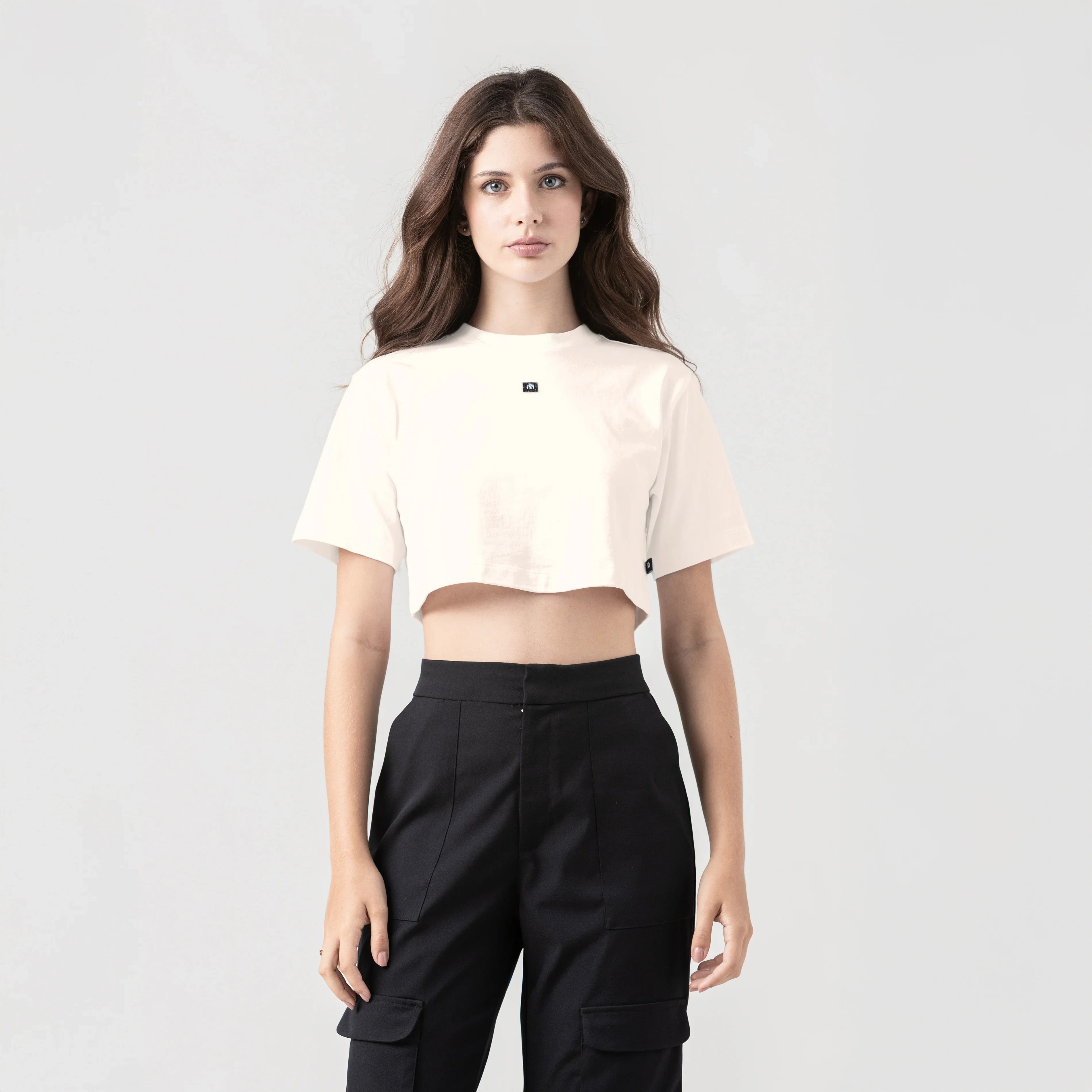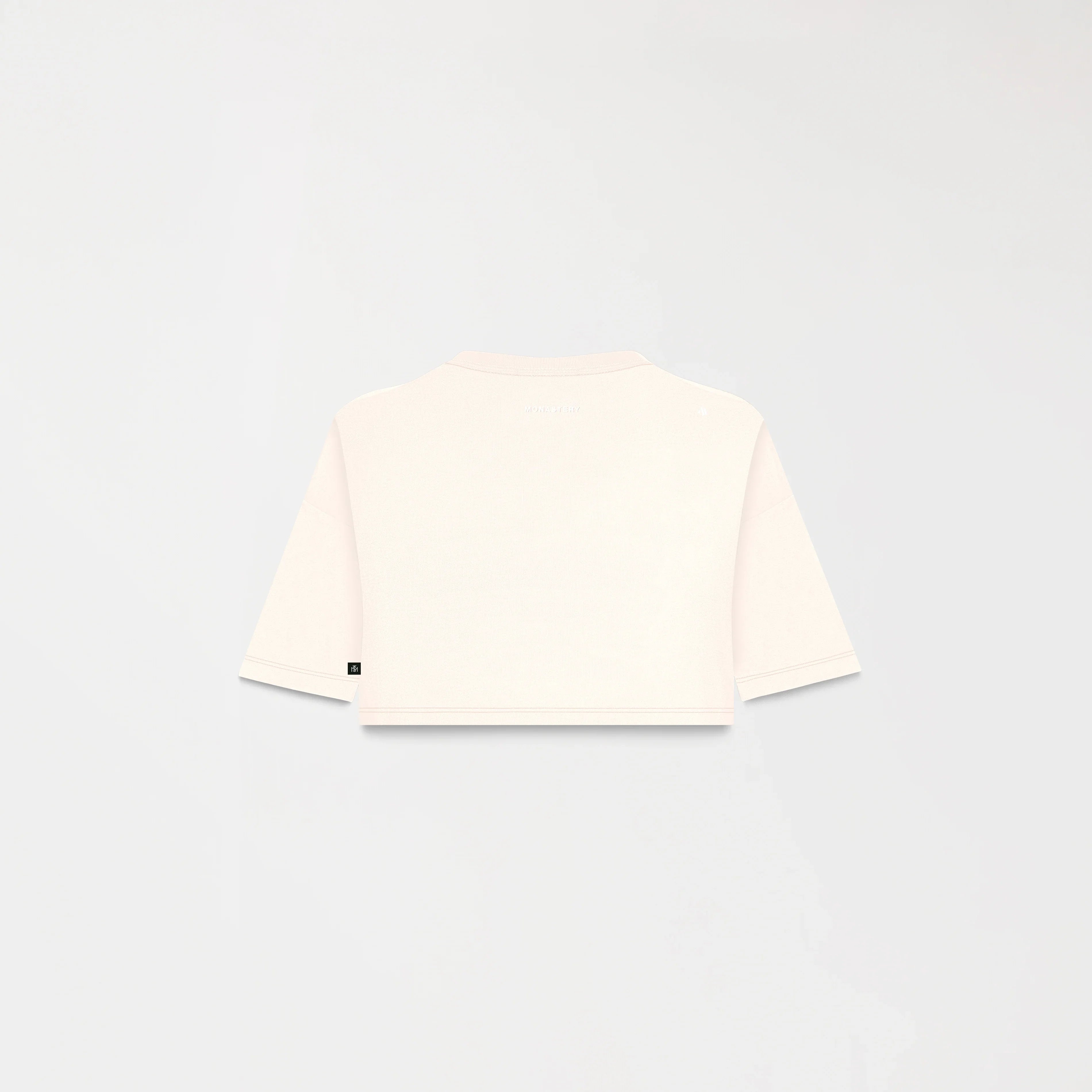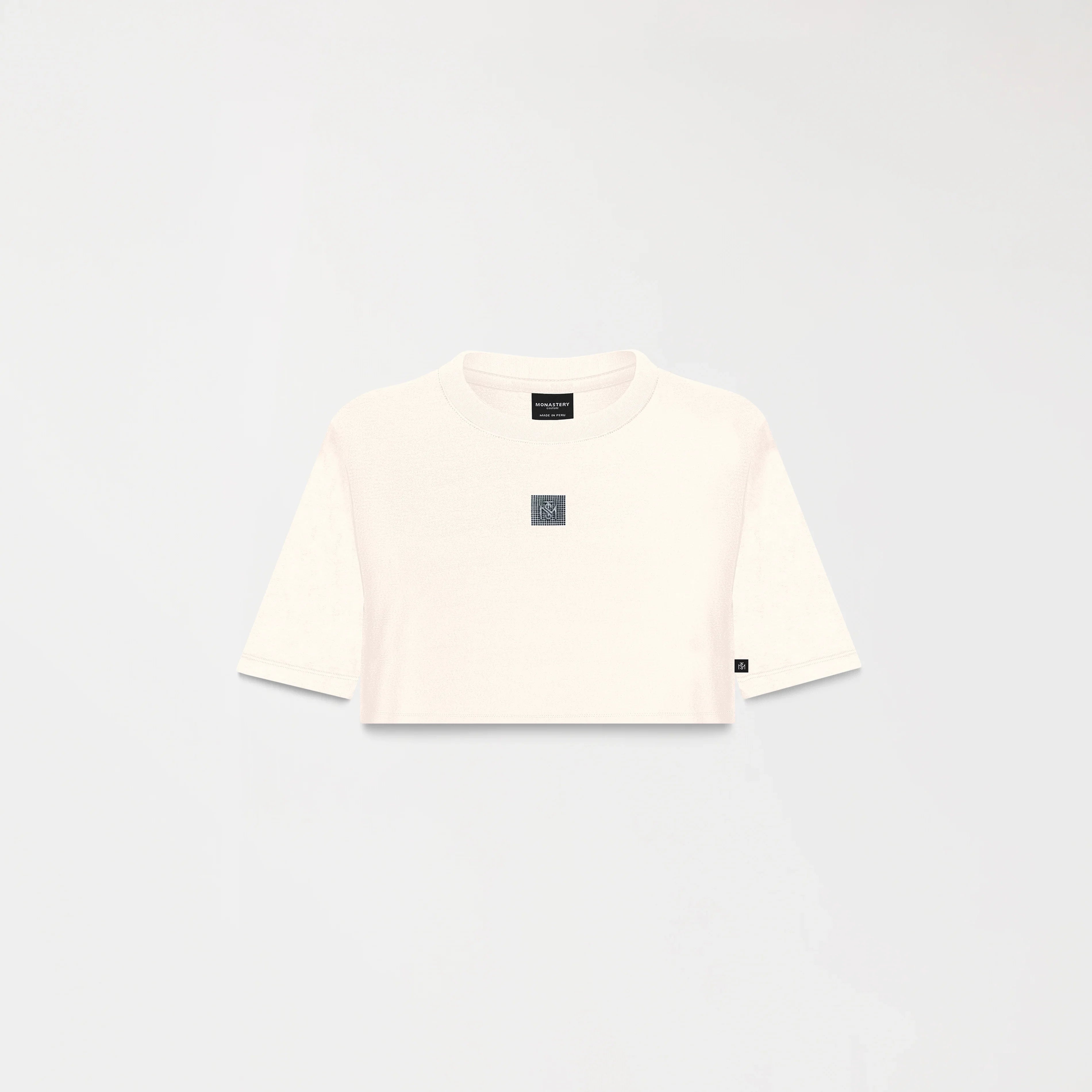 Naia es una prenda de silueta pequeña que destaca por su diseño elegante y minimalista. En el frente, luce un delicado aplique de cristales Swarovski, que aporta un toque de brillo y sofisticación. La parte posterior presenta los logos tradicionales de la marca aplicados en técnica plano, logrando un acabado limpio, sutil y duradero. Está confeccionada en algodón peruano de alta calidad, lo que garantiza suavidad al tacto, frescura y una excelente caída. Ideal para quienes buscan elegancia con una estética atemporal y refinada.