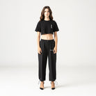 Crop top femenino en algodón 100% exclusivo para Monastery, silueta pequeña. Nekane presenta un diseño frontal en degradé que aporta profundidad visual y movimiento, acompañado de técnica flock eleva el acabado del estampado, la espalda cuenta con logos insignia en estampado plano, obteniendo una prenda perfecta para complementar tu vestuario.