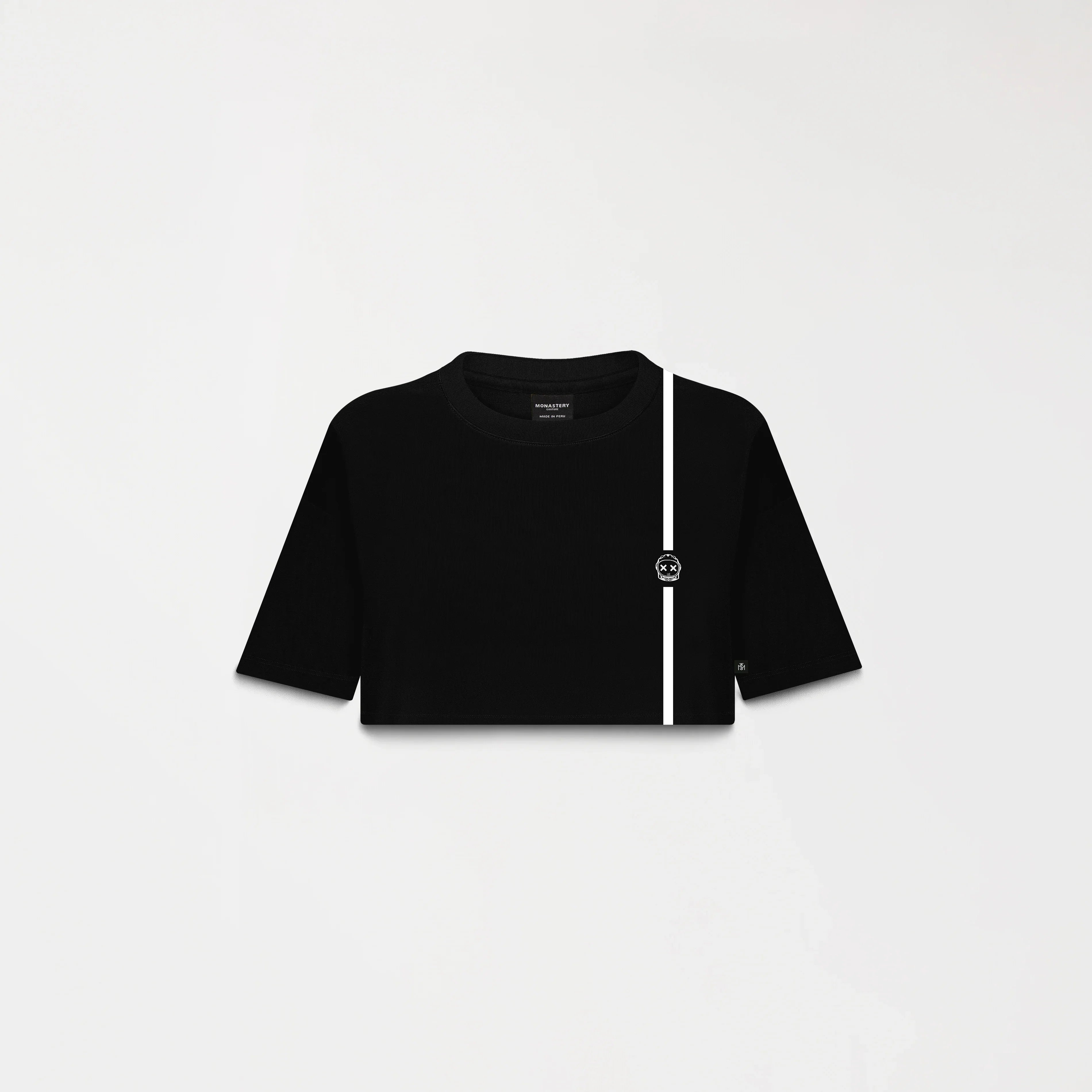 El crop top Seiko está diseñada con un corte moderno. En la parte frontal, presenta los logos Monastery y Phillip estampados en plastisol plano, aportando un acabado limpio y contemporáneo. La parte posterior incorpora insignias en plastisol de tono contraste con la prenda, aplicadas con técnica de alta densidad para un efecto visual destacado y mayor durabilidad. Confeccionado en algodón peruano de alta calidad, que garantiza suavidad, confort y resistencia.