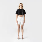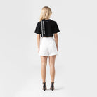 El crop top Seiko está diseñada con un corte moderno. En la parte frontal, presenta los logos Monastery y Phillip estampados en plastisol plano, aportando un acabado limpio y contemporáneo. La parte posterior incorpora insignias en plastisol de tono contraste con la prenda, aplicadas con técnica de alta densidad para un efecto visual destacado y mayor durabilidad. Confeccionado en algodón peruano de alta calidad, que garantiza suavidad, confort y resistencia.