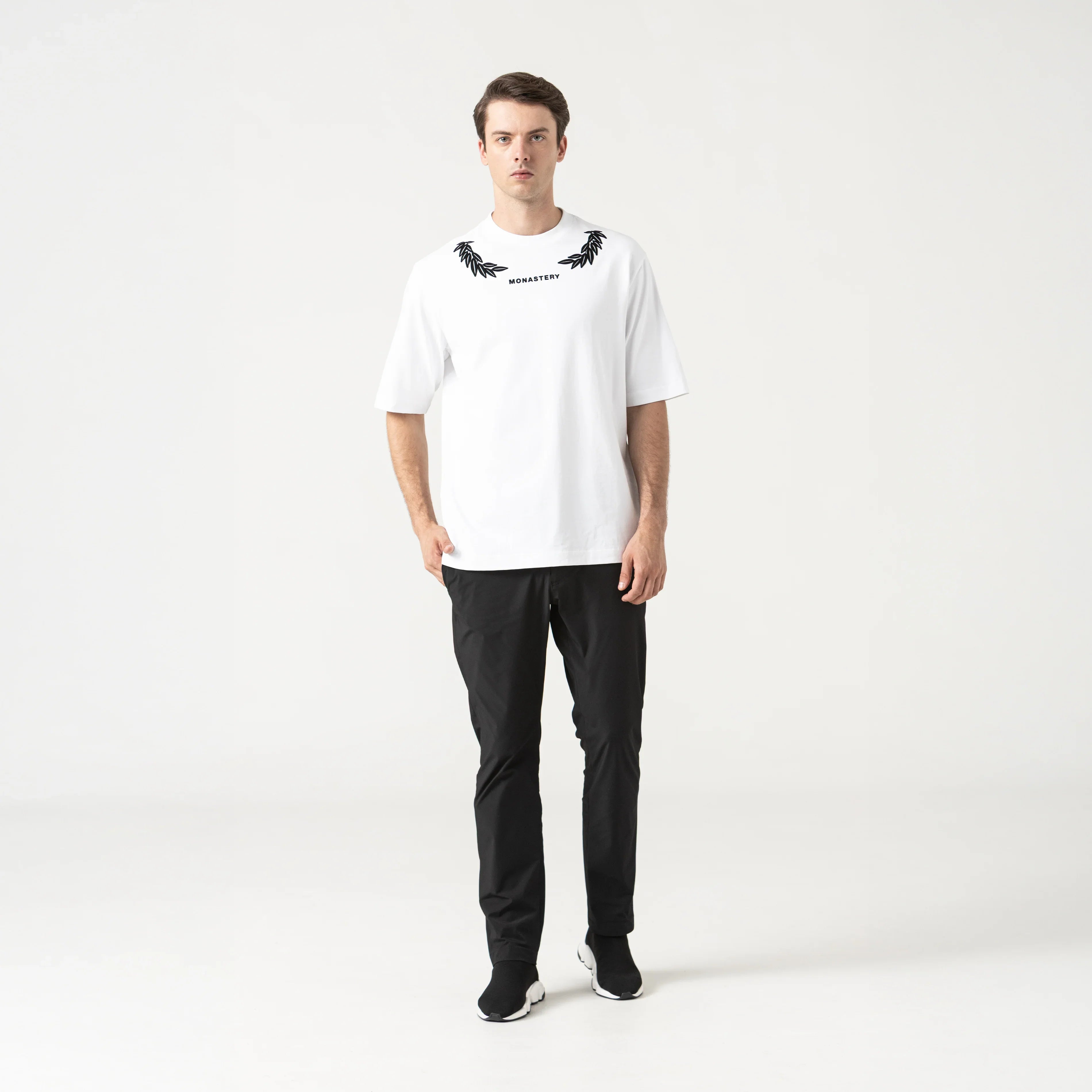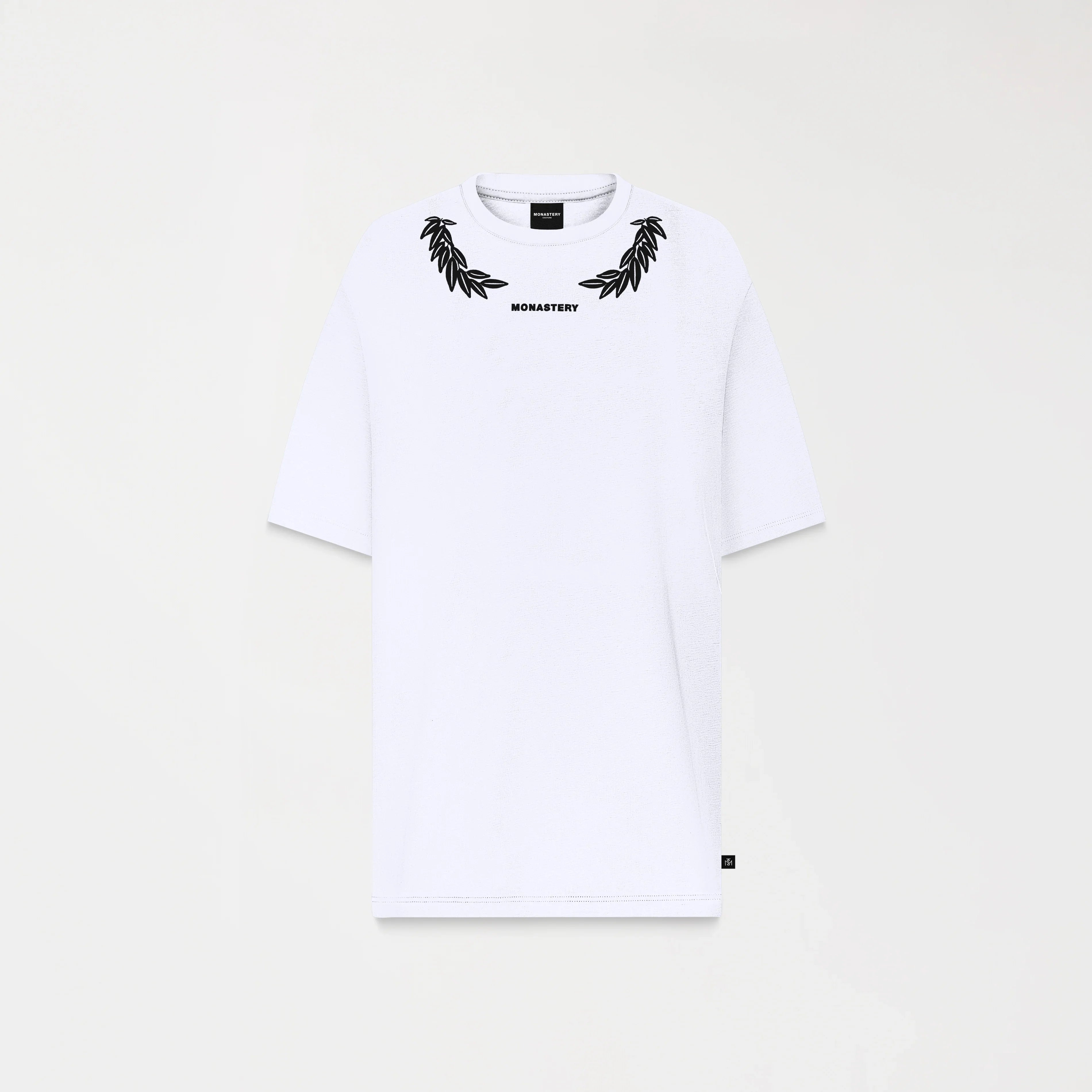 Arathorn es una camiseta para hombre, dinámica y versátil, la cuál presenta nuestro logo Monastery en frente, acompañado de una corona de laurel evocando a la victoria y gloria del rey, creado bajo técnica flock; convirtiéndose en un articulo único y fácilmente reconocible de nuestra marca. Elaborada en un silueta oversized en algodón 100% exclusivo para Monastery.