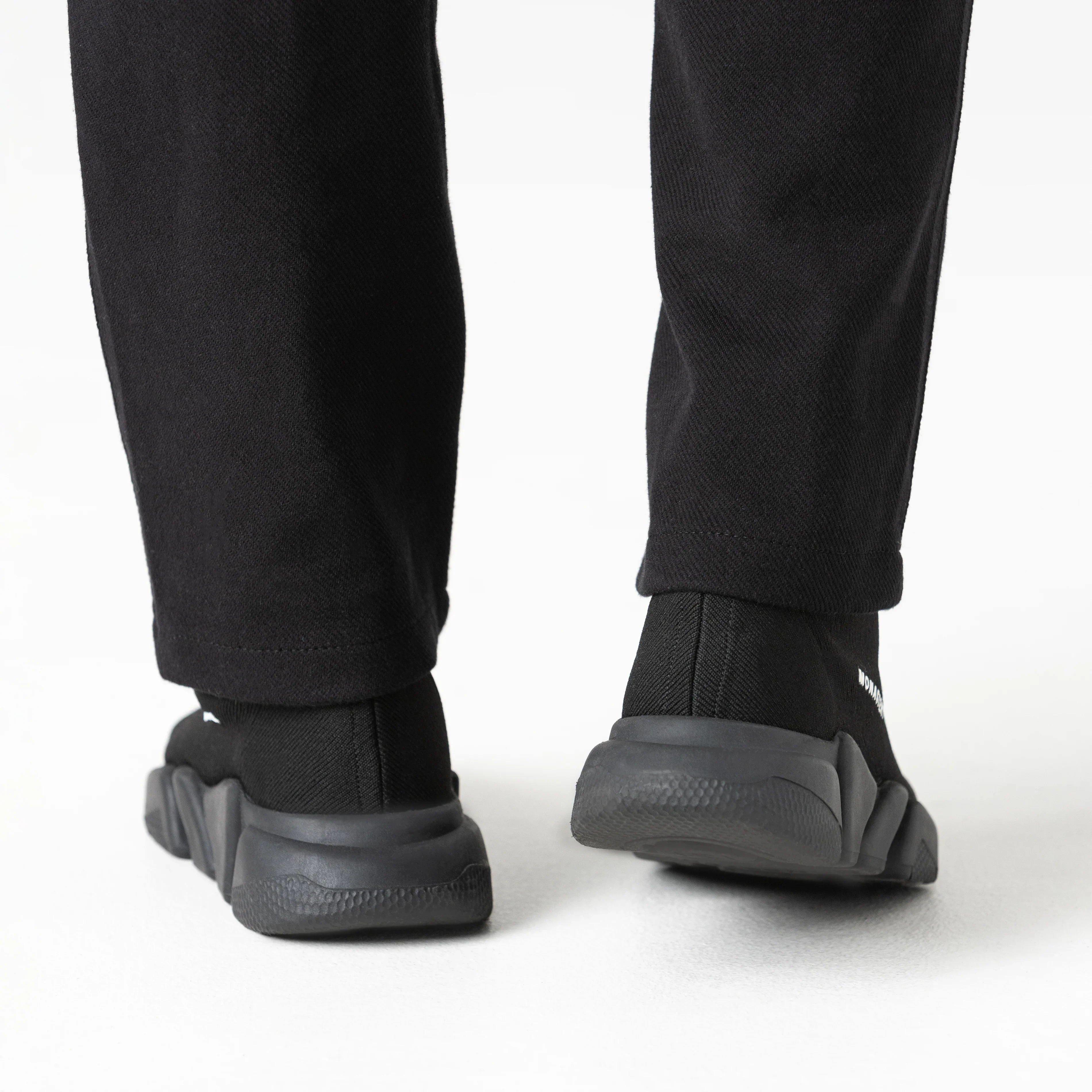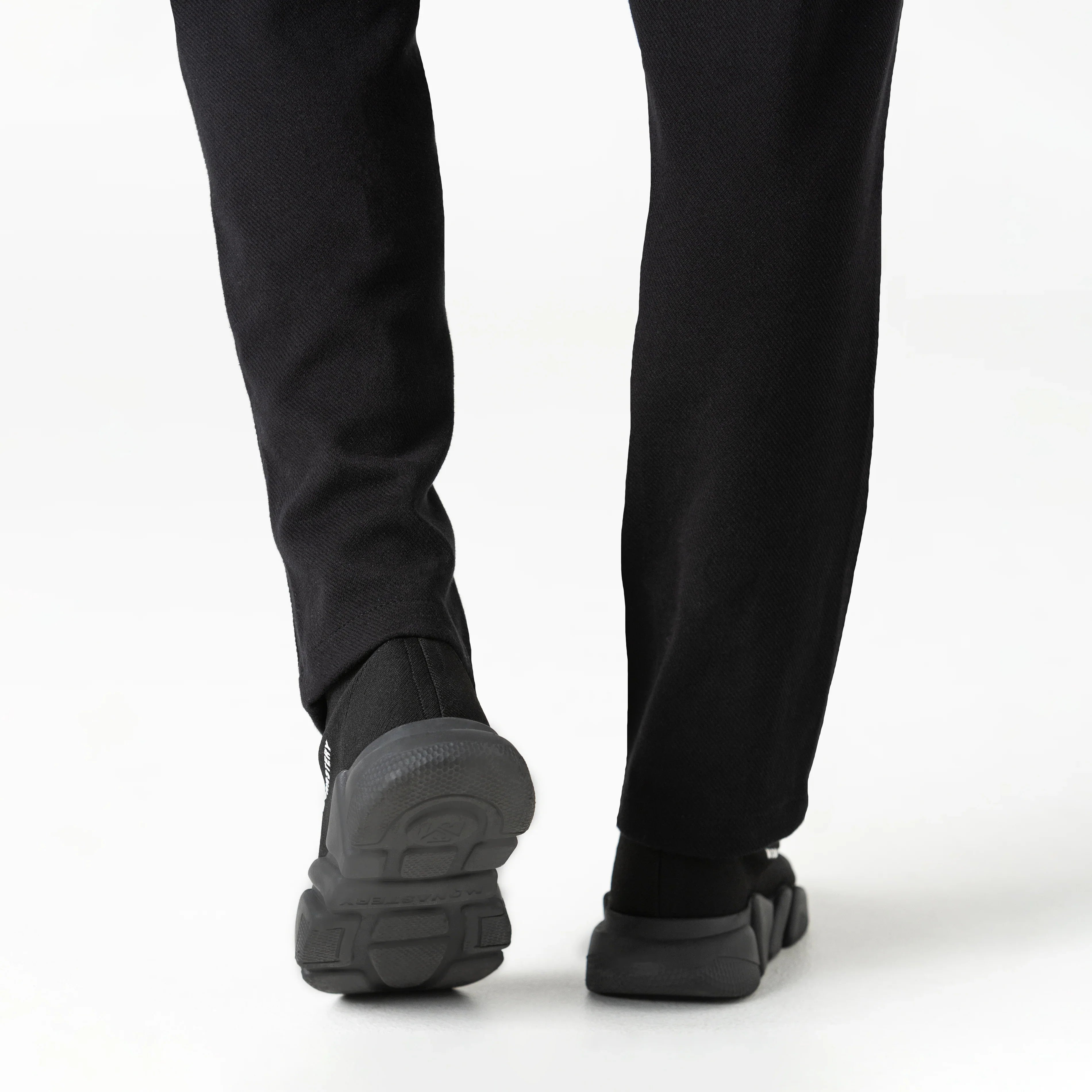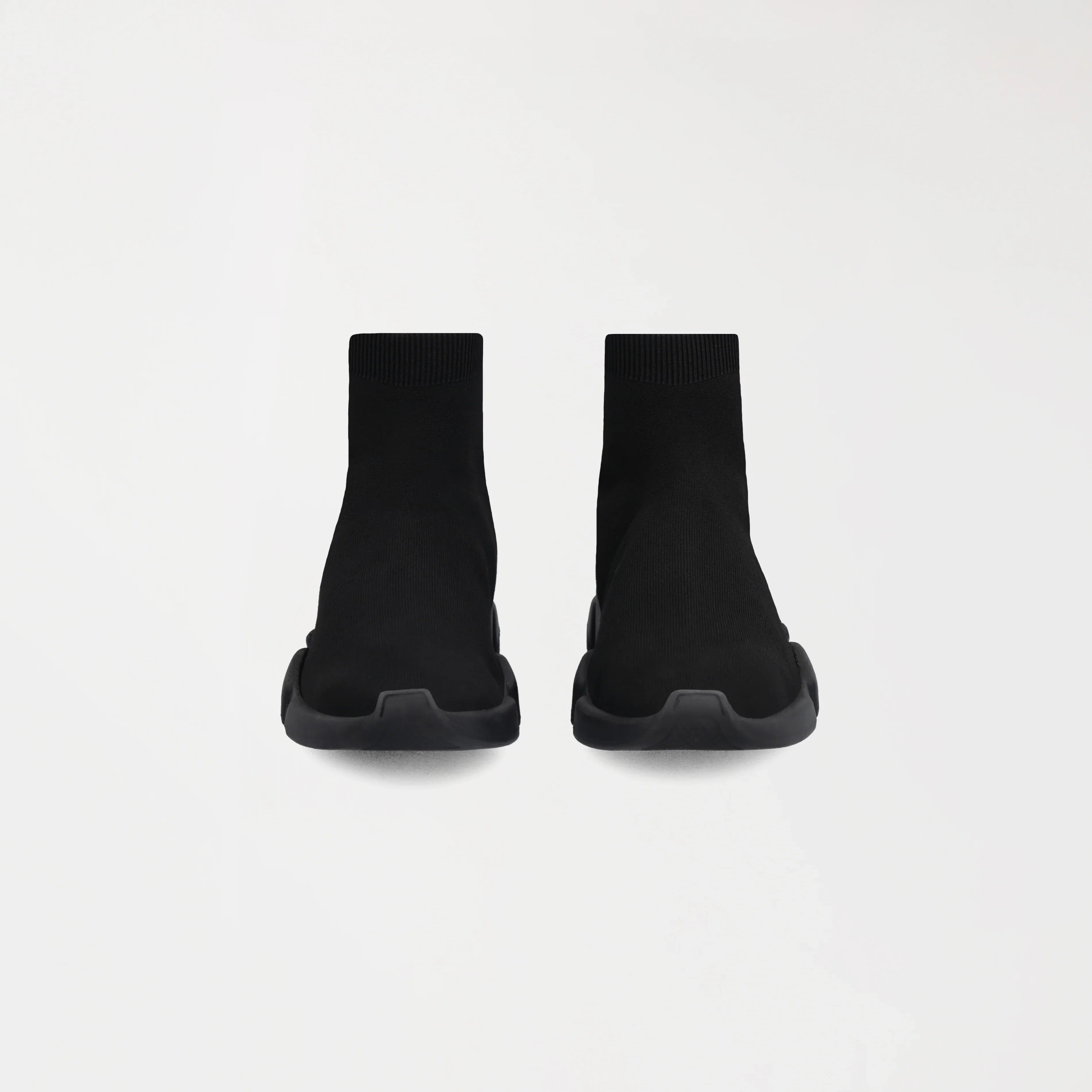 Estos sneakers tipo media presentan un diseño moderno, minimalista y altamente versátil, donde comodidad y estilo convergen en una sola pieza. La parte superior, confeccionada en tejido elástico negro, se adapta al pie con precisión, brindando una sensación de sujeción similar a la de una media y una silueta limpia, dinámica y sin costuras visibles.