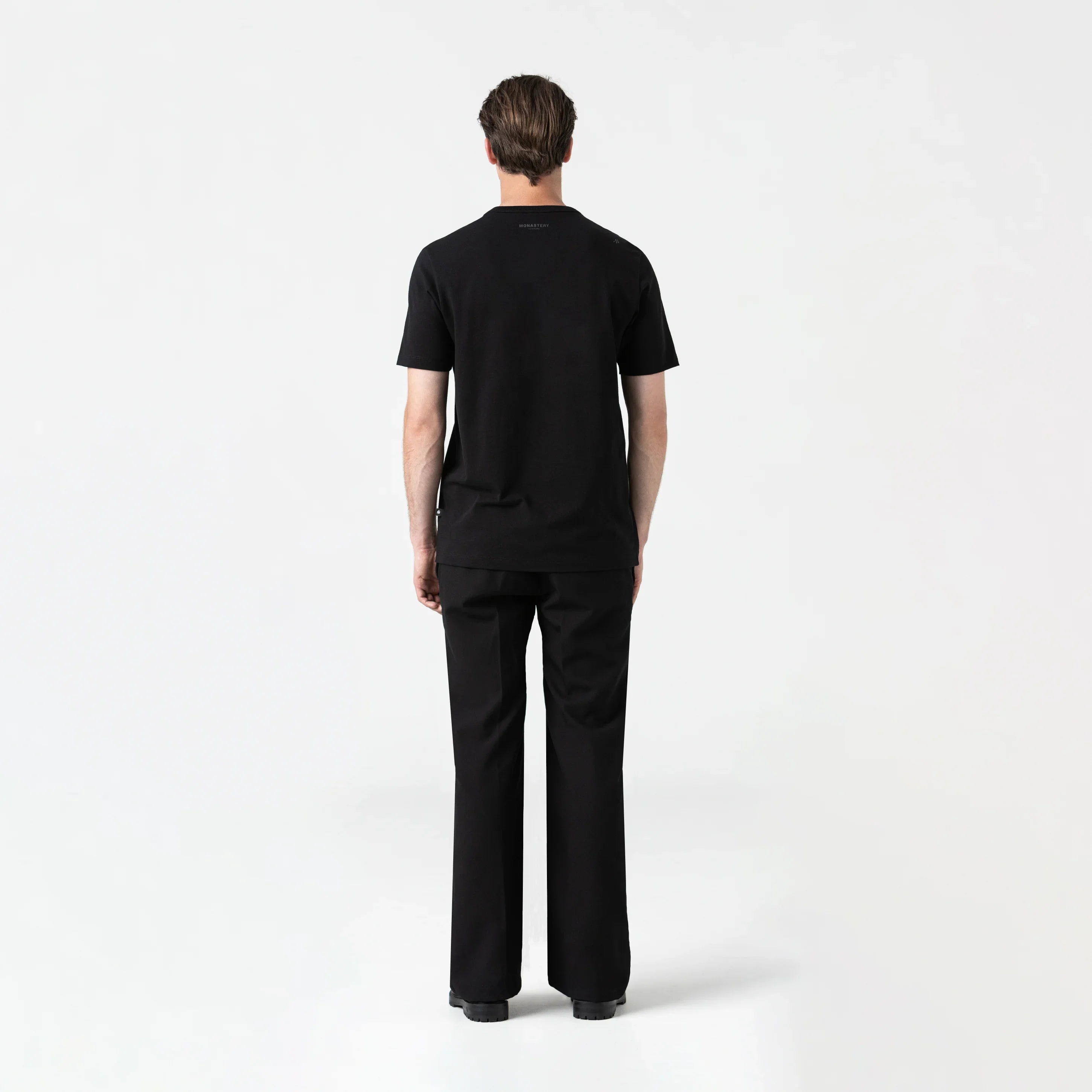 Diseñada para quienes aprecian el detalle gráfico y la calidad en los acabados. Confeccionada en tela Monastery, ofrece una textura suave, resistente y de excelente caída. Su diseño incorpora un cuello en rib de 2.5 cm, que aporta estructura y definición al contorno. La gráfica combina dos técnicas que se complementan: un estampado en alta densidad, que aporta textura y volumen, junto a un plastisol plano, que equilibra con precisión y nitidez visual. Una prenda que destaca por su carácter gráfico y ejecución impecable —ideal para looks con estilo consciente.