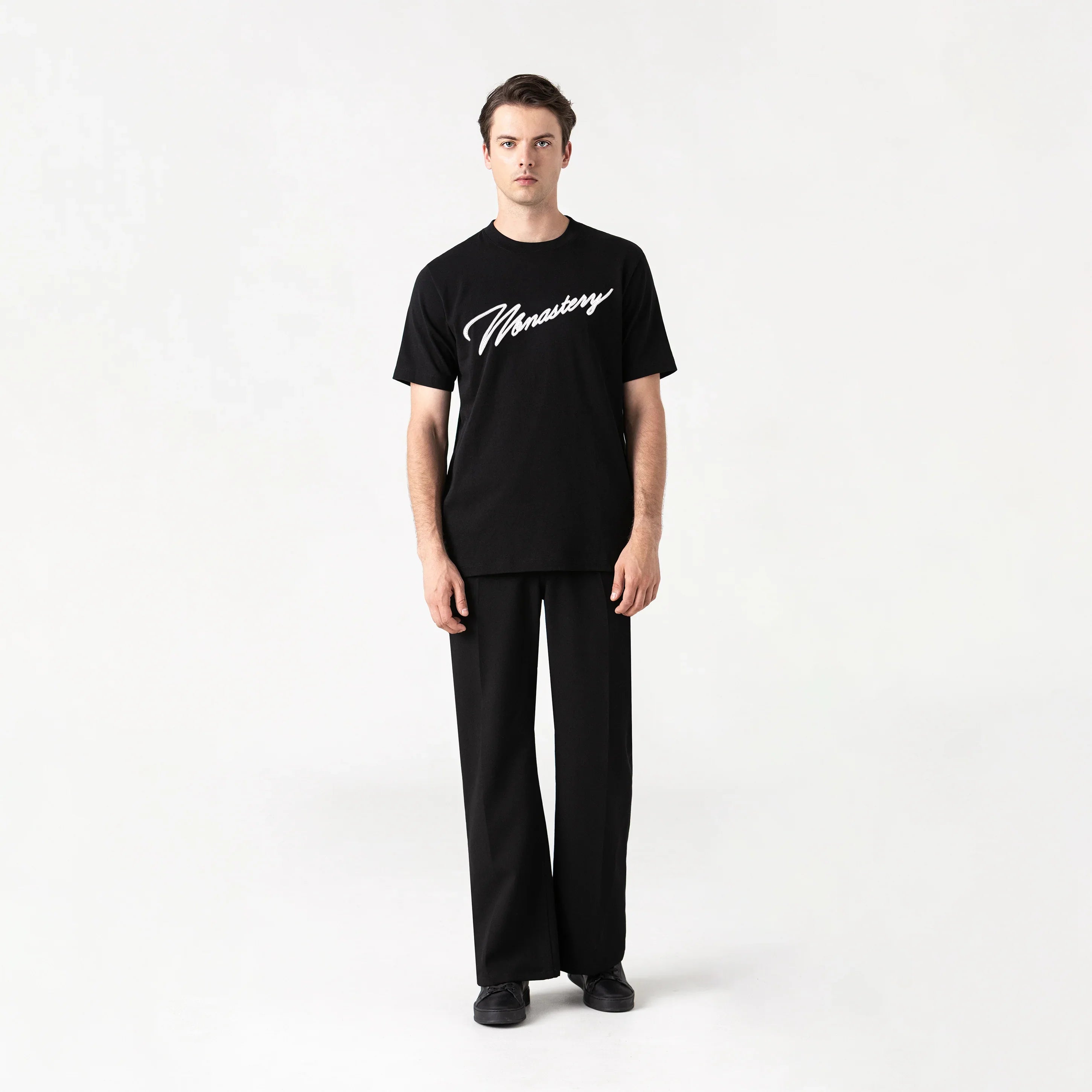 Confeccionada en tela Monastery, proporciona suavidad, estructura y un fit cómodo para el uso diario. Incorpora un cuello en rib de 2.5 cm, El frente se destaca con un estampado plano, limpio y versátil, mientras que el detalle diferencial está en el plastisol plano aplicado sobre pespuntes, que agrega textura sutil y precisión visual, elevando la prenda con un toque moderno. Una camiseta que demuestra que el detalle marca la diferencia.
