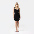 Vestido tejido elaborado en una silueta basica con una base textil acanalada la cual permite que se te ajuste al cuerpo brindando conffort, elegancia y versatilidad a la prenda. Carla esta acompañada de una fina placa metalica contramarcada con el icono logo insignia en frente y un bordado clasico en espalda ideal para un look casual o distintas ocasiones de uso.