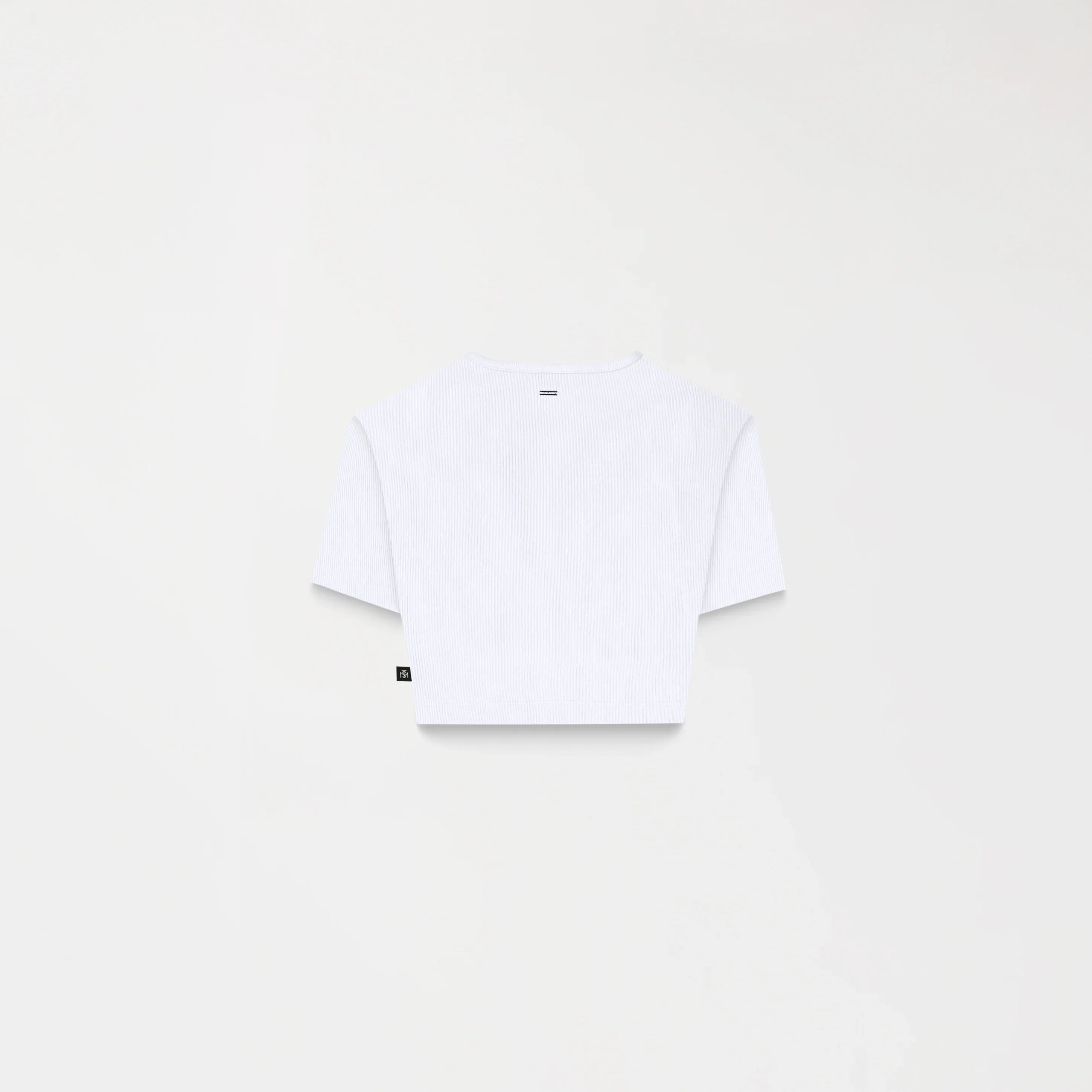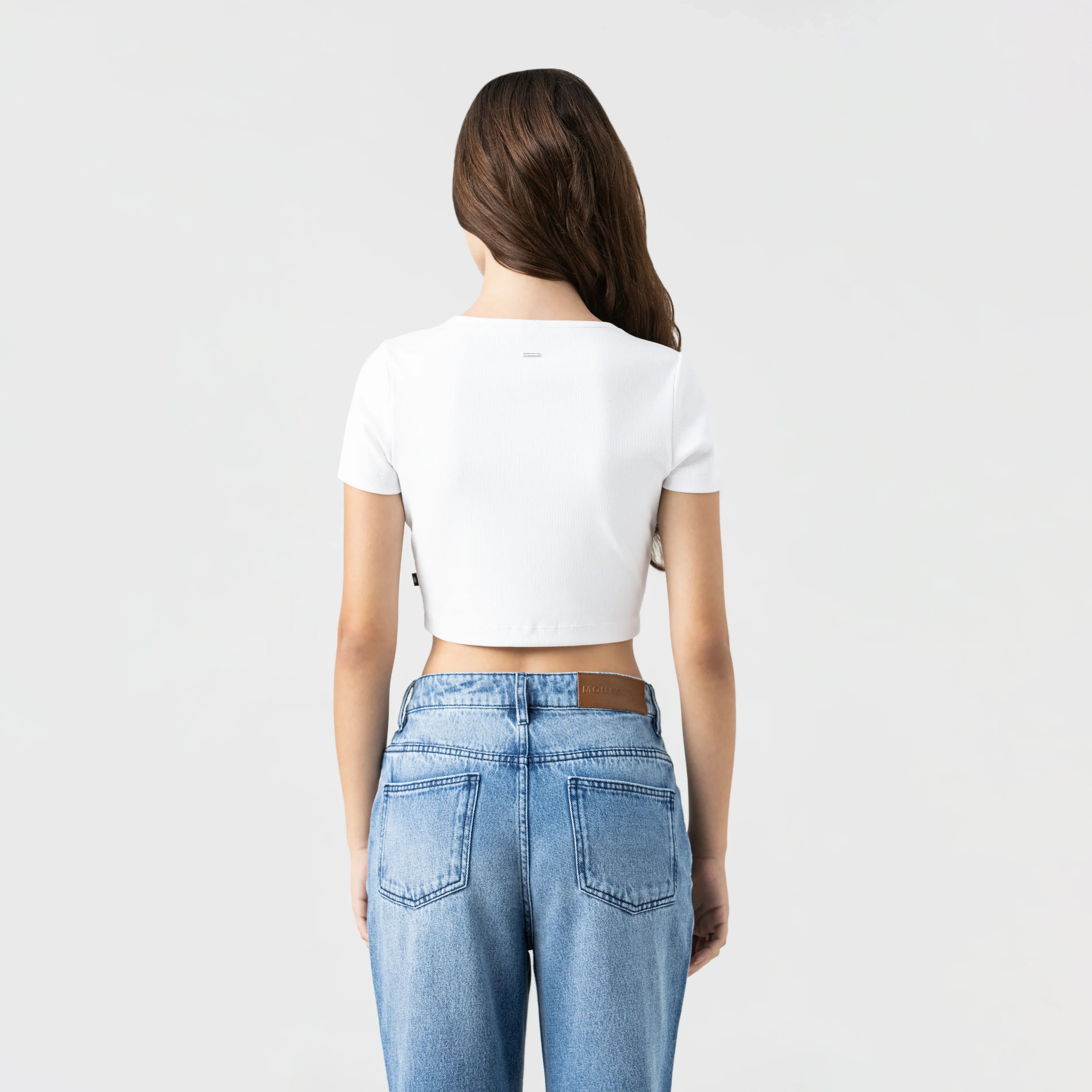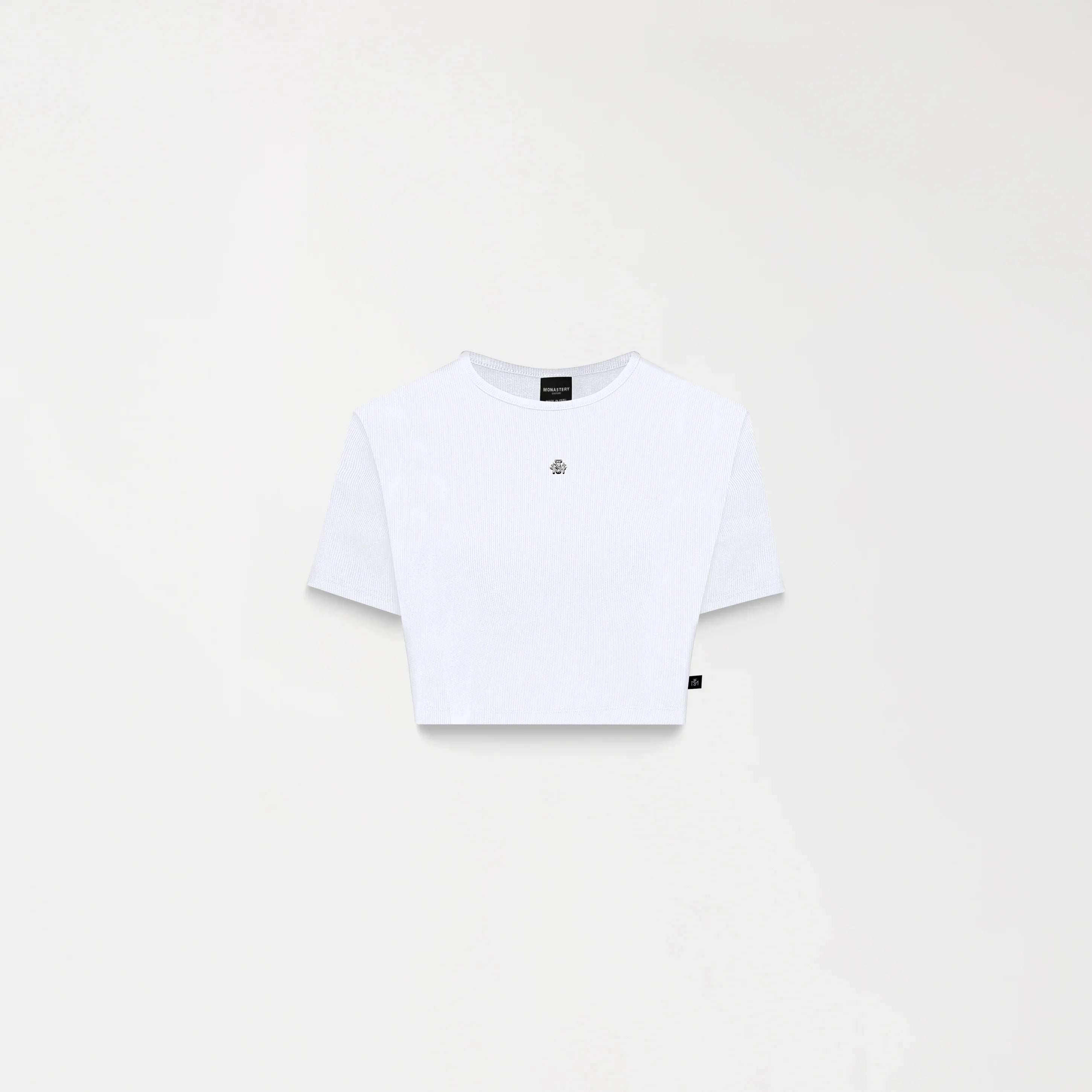 Croptop femenino elaborado en silueta pequeña pensada para resaltar la figura femenina, elaborada en Rib Monastery que brinda un mejor ajuste en el cuerpo, Godiva es una prenda con aplique metalico Tsm en frente y en espalda logo Monastery, brindan un aspecto elegante y contemporáneo por sus insumos plata brillante de alta calidad.