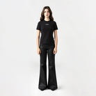 T-shirt femenina elaborada en silueta pequeña pensada para resaltar la figura femenina, atravez de su base textil, fresca y ajustada. Qylla es una referencia intervenida con aplicacion de cristales ubicados de forma continua en toda la prenda, dispuestos con presicion para generar un efecto dinamico, contiene el logo Monastery couture en centro frente en tecnica transfer el cual refuerza el contraste visual sin restarle protagonismo al diseño, la parte posterior cuenta con artes insignia en estampado plano ideal para destacar desde la elegancia.