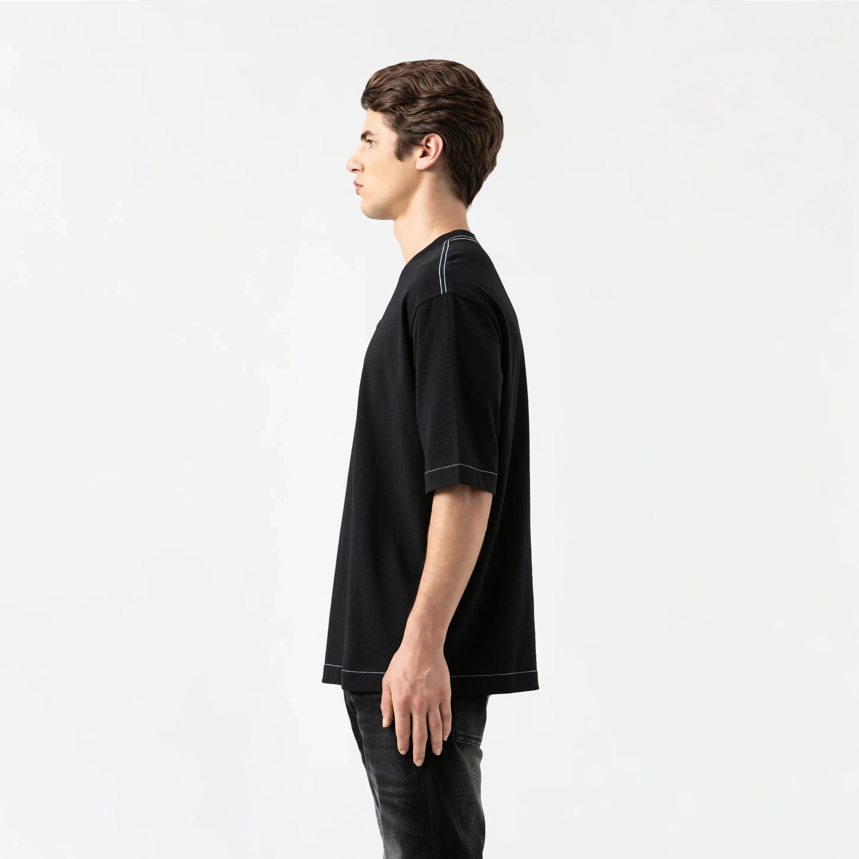 Eolo es una camiseta masculina. Con silueta oversized, cuello en rib de 2.5 cm y confeccionada en la exclusiva tela Monastery 100% algodón, esta t-shirt fusiona funcionalidad y diseño con carácter. El frente incorpora un aplique que aporta un toque contemporáneo y texturizado, mientras que la espalda se realza con un estampado en alta densidad que añade dimensión. Las costuras en contraste refuerzan su estética moderna, y su disponibilidad en cuatro colores permite expresar tu estilo con versatilidad. Una prenda creada para destacar, sin esfuerzo.