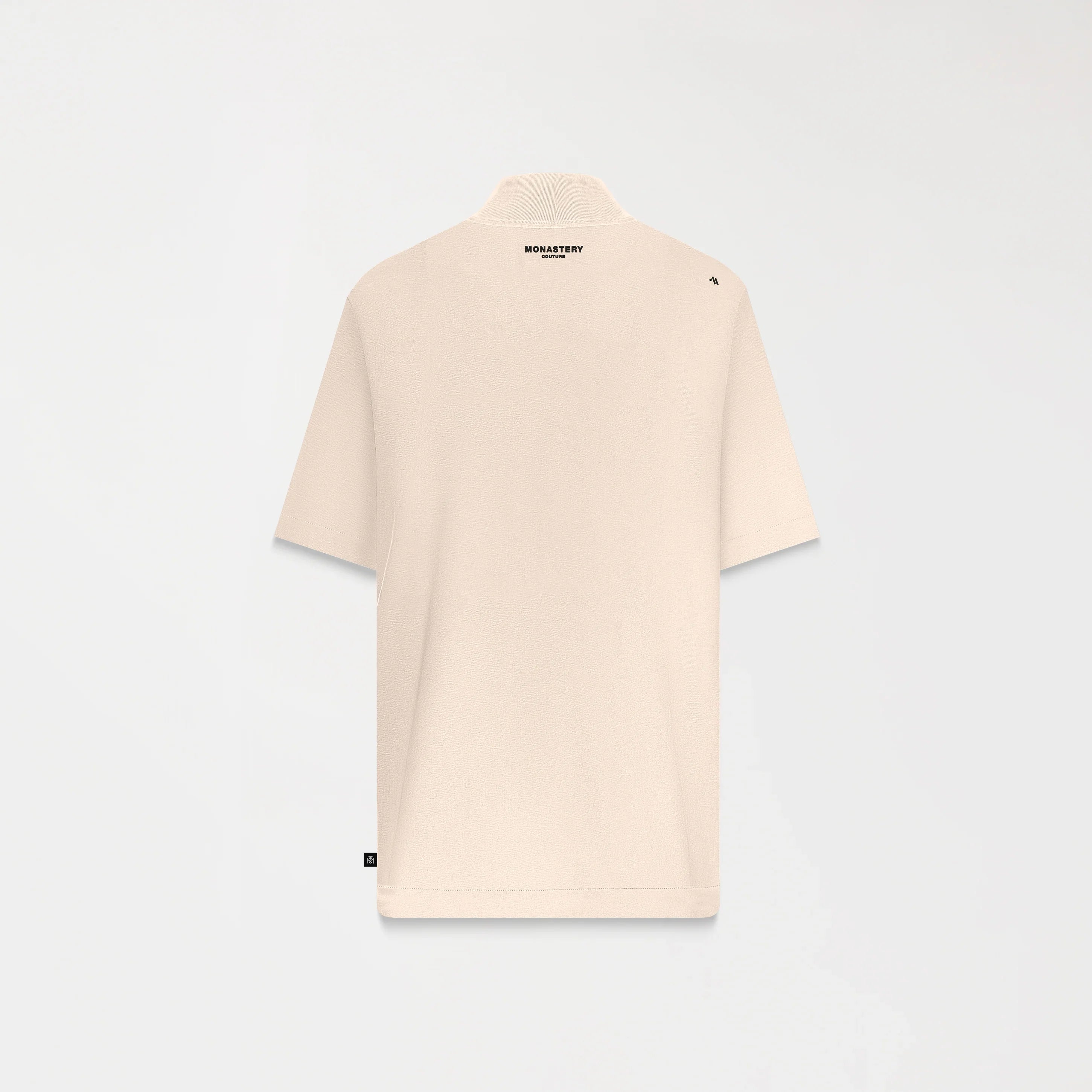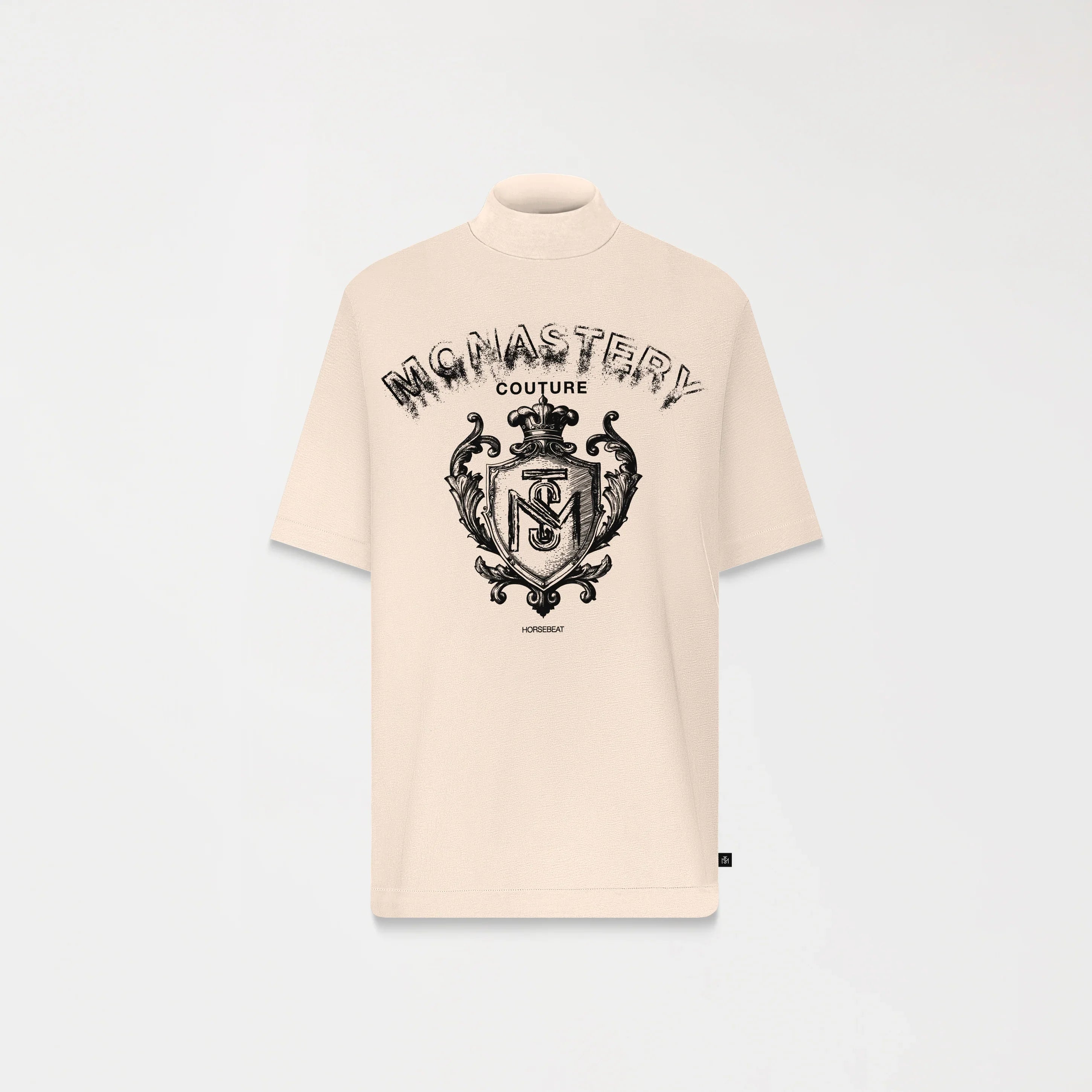 Sheval es una camiseta masculina. Esta camiseta de silueta oversized y cuello en rib de 5 cm está confeccionada en nuestra exclusiva tela Monastery 100% algodón, que ofrece estructura, suavidad y un fit relajado con carácter. El frente presenta un estampado plano con un diseño de escudo Monastery, símbolo de fuerza, legado y estilo atemporal. En la espalda, un estampado en alta densidad aporta textura y profundidad, cerrando una propuesta visual potente y equilibrada. Ideal para quienes visten con intención y confianza.