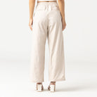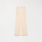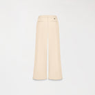 Pantalón para mujer silueta amplia elaborado con la base textil Moretti que ofrece un ajuste cómodo y fluido. Está diseñado con un estilo moderno y versátil, ideal para quienes buscan comodidad sin sacrificar el diseño. En la parte frontal, destaca una placa metálica con baño de plata que aporta un toque distintivo de la marca. Los bolsillos agregan un toque práctico, mientras que el ribete en la parte posterior del pantalón le da un detalle elegante y sofisticado.