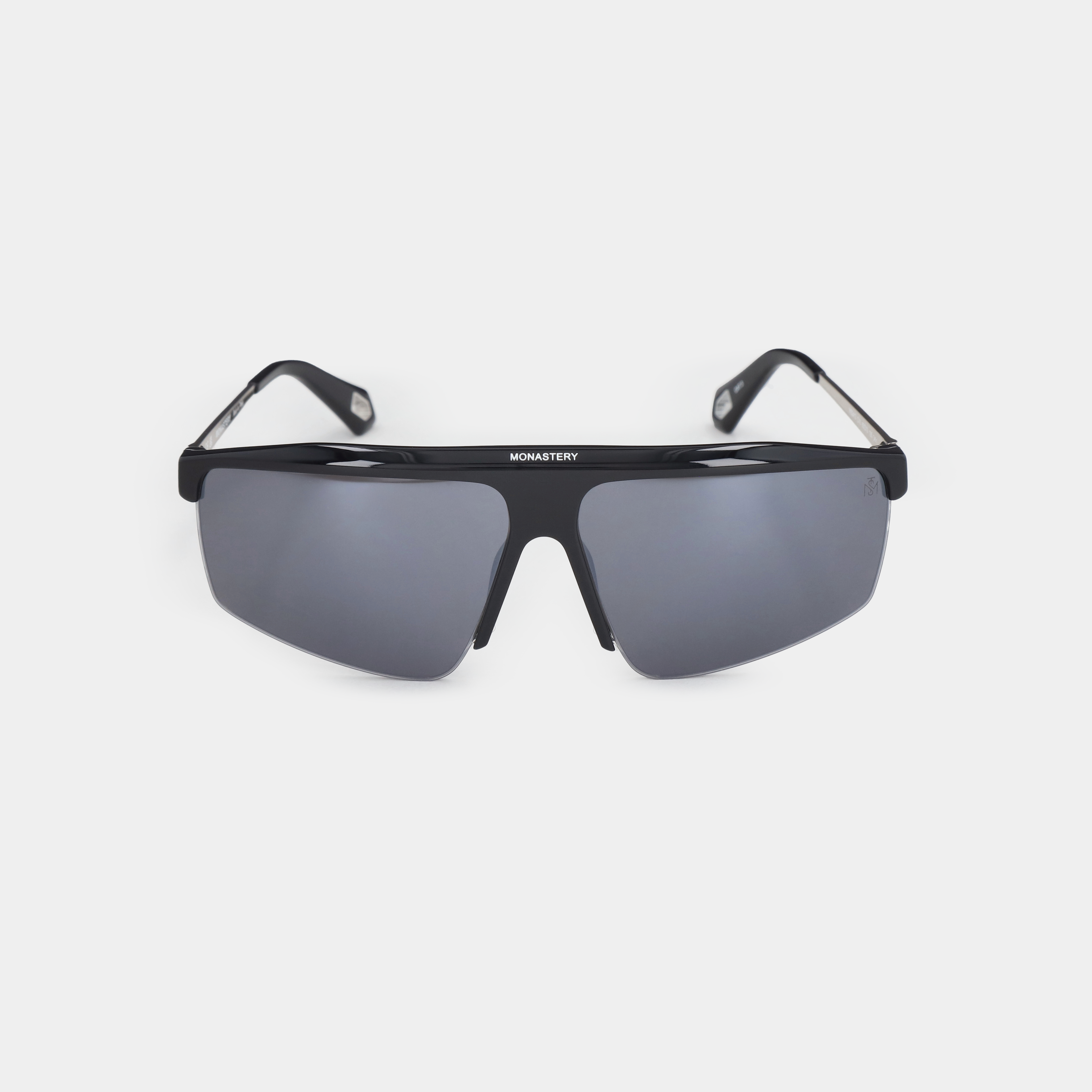 MSS2413-C10-63 ARAN SUNGLASSES MEN BLACK SHINY SILVER SOLID GREY WITH LIGHT MIRROW