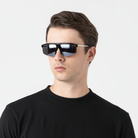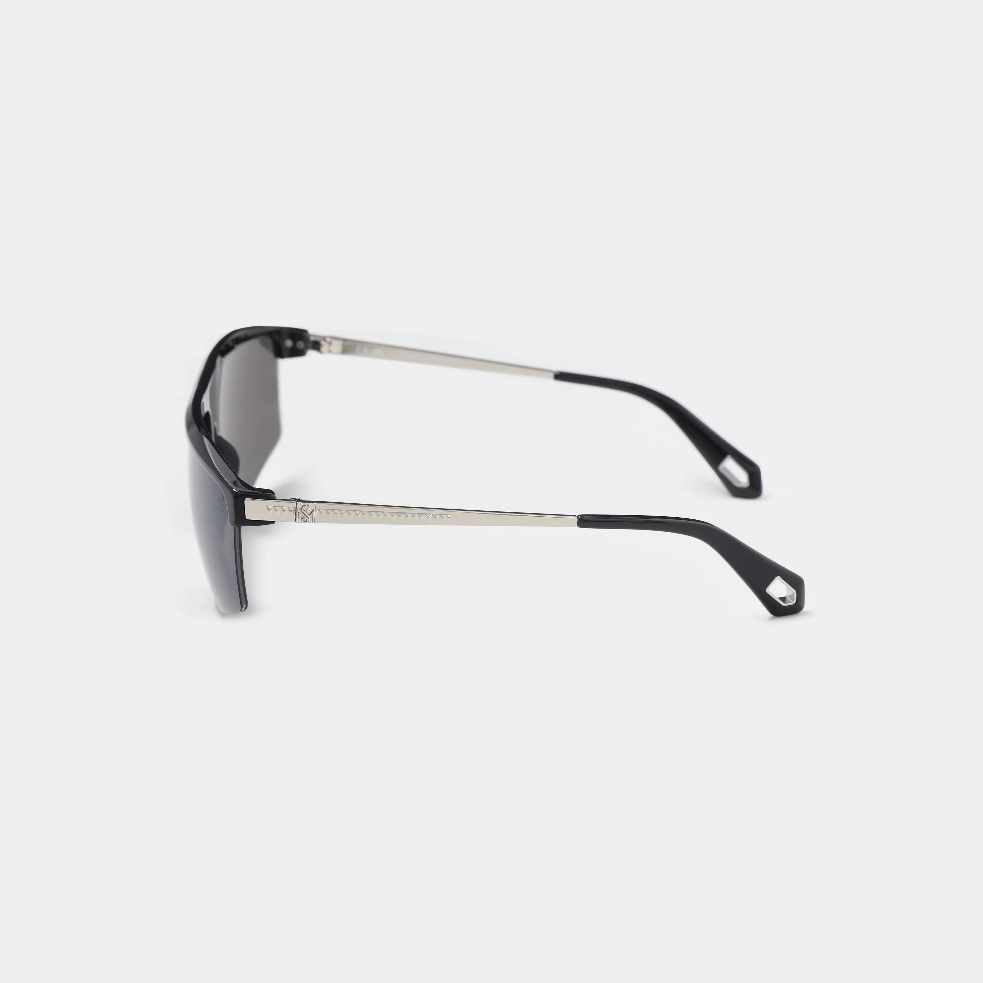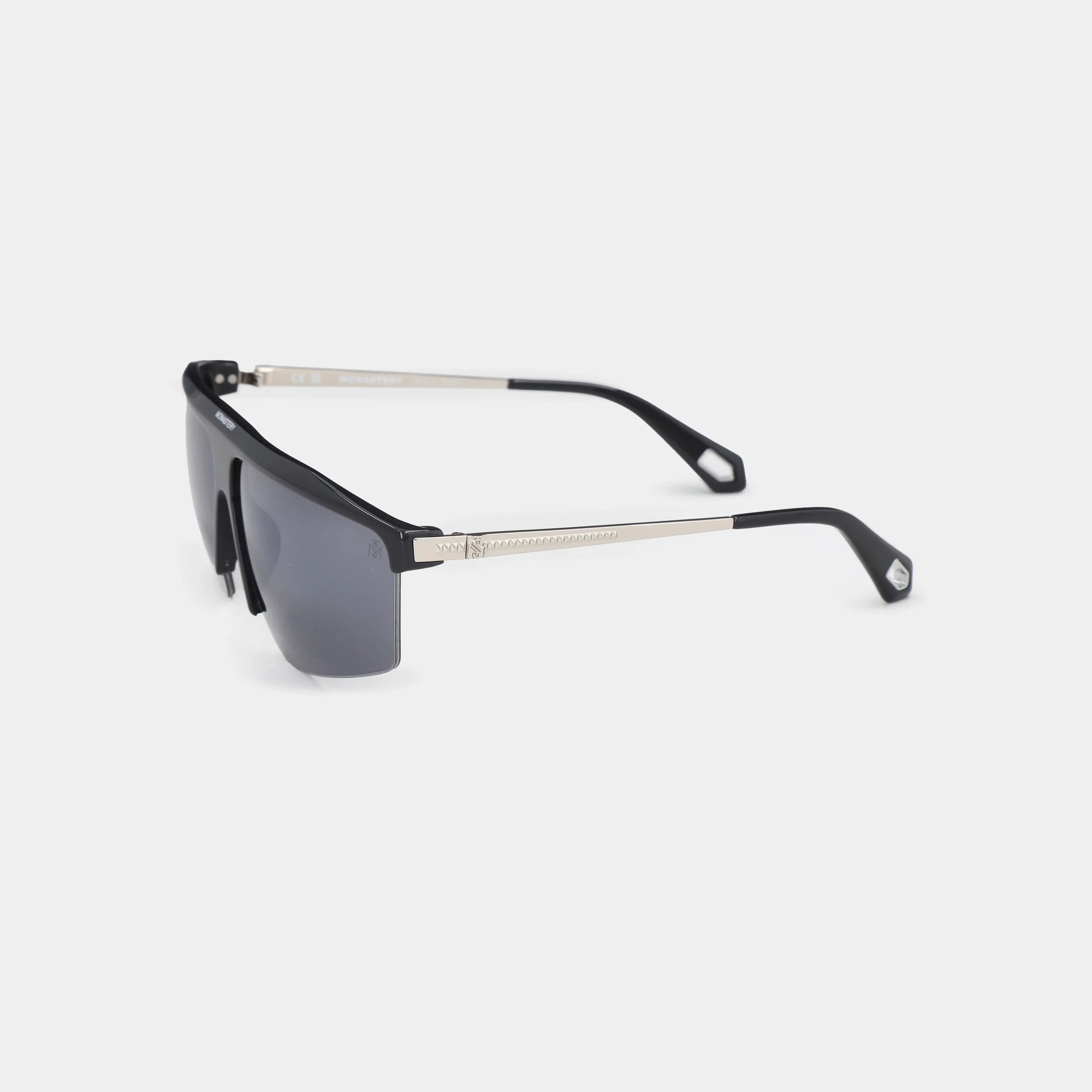 ARAN SUNGLASSES MEN BLACK SHINY SILVER SOLID GREY WITH LIGHT MIRROW