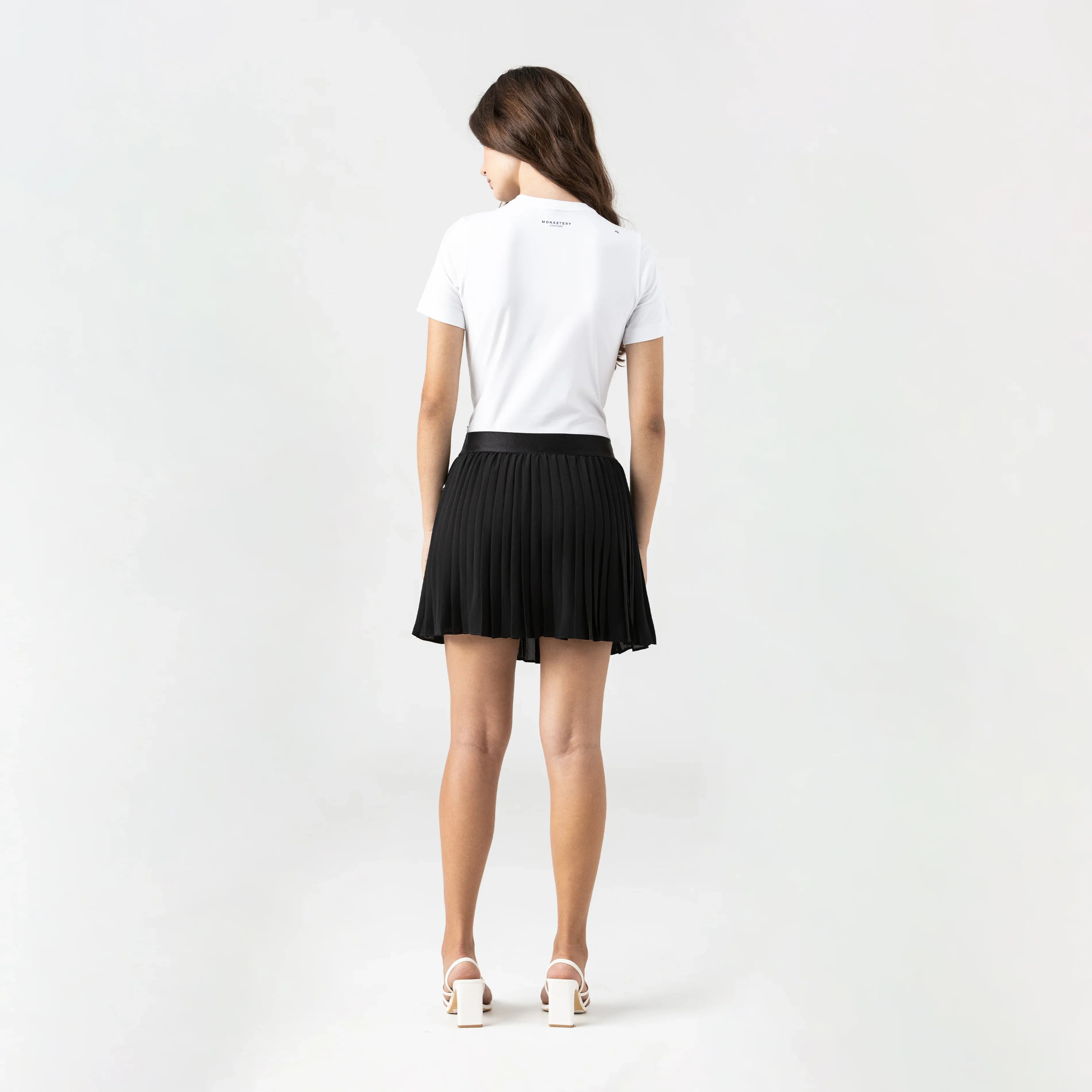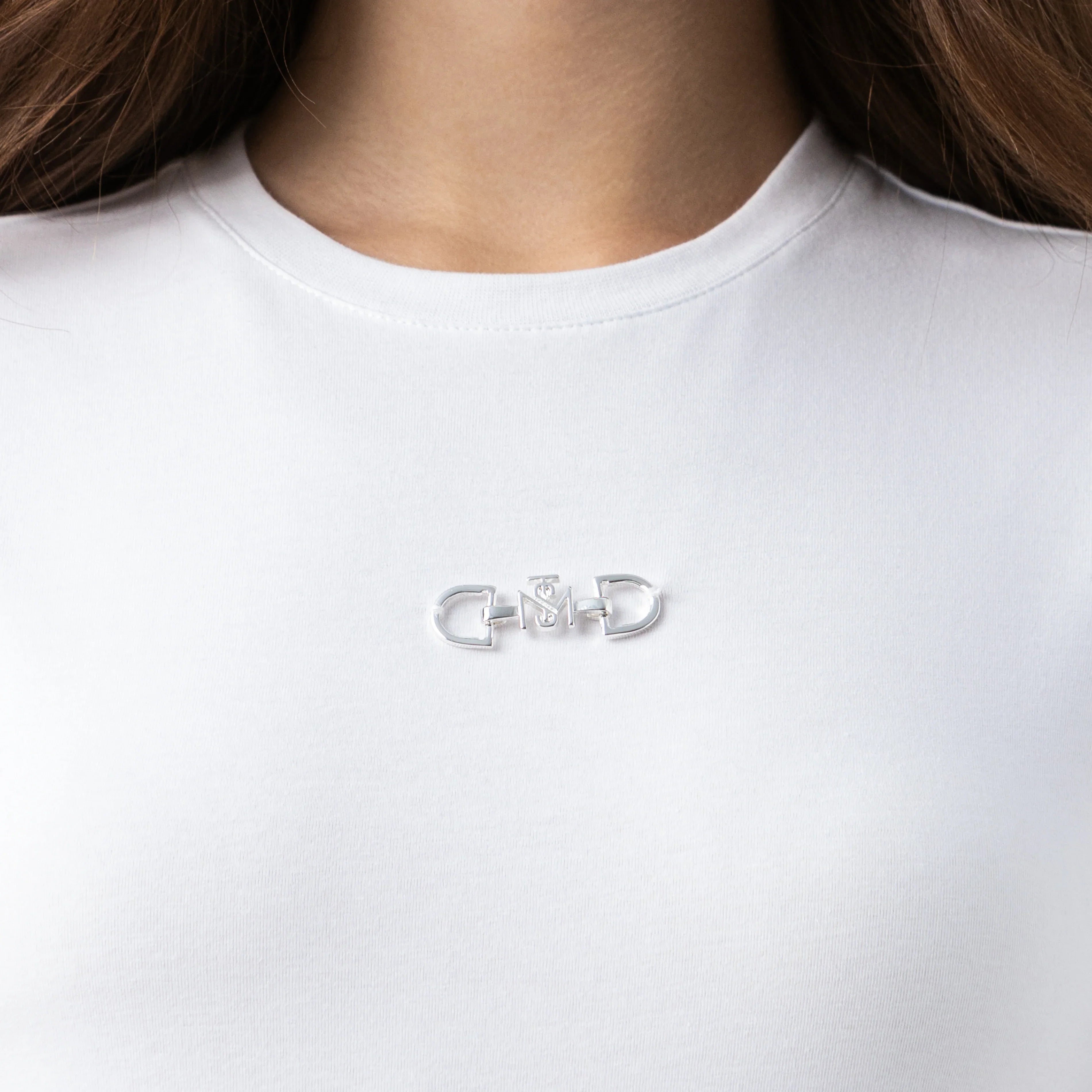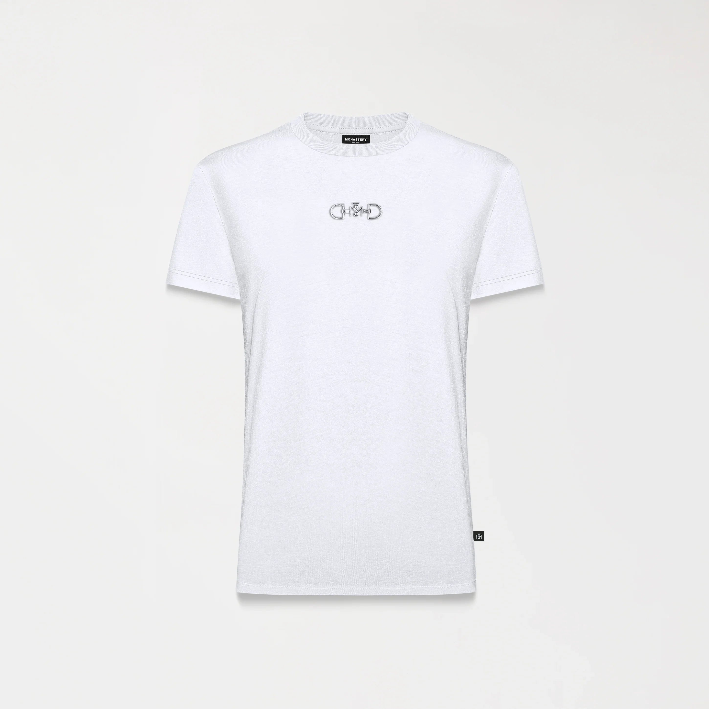Jane es una t-shirt femenina diseñada en silueta pequeña que realza la figura a través de una base textil fresca y ajustada. En el frente, destaca un aplique metálico Monastery en plata brillante de alta calidad, aportando un detalle distintivo y elegante. La espalda mantiene la identidad de la marca con logos insignia en estampado plano, logrando un equilibrio entre sobriedad y carácter. Una prenda versátil que combina comodidad y modernidad, ideal para elevar cualquier look casual con un toque exclusivo.