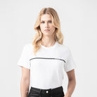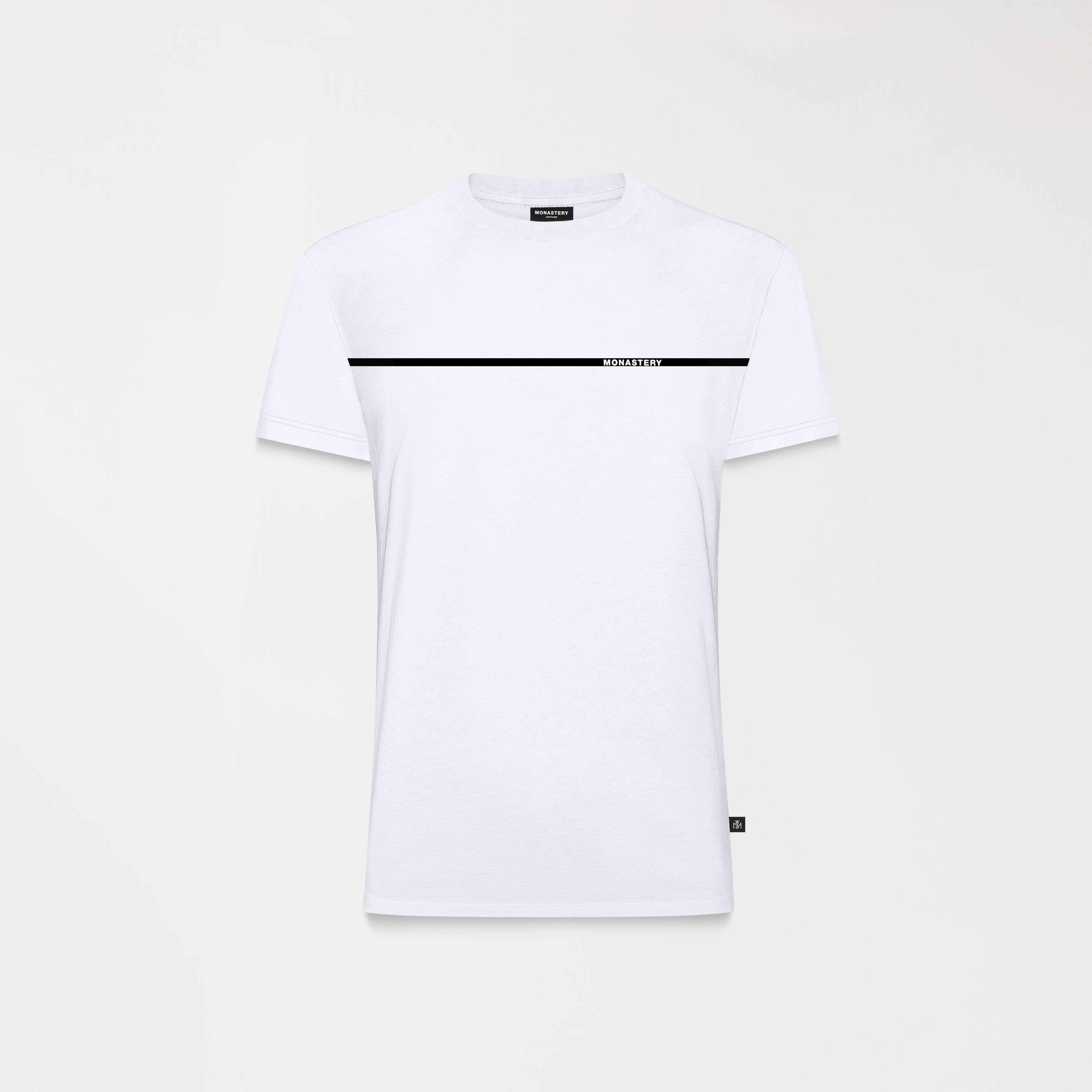 Camiseta femenina elaborada con una silueta regular pensado para el confort de la mujer Monastery, Molly es un diseño que lleva el logo Monastery en frente sobre una notable linea tono contraste la cual resalta de manera dinamica sobre el diseño, Elaborada en nuestra base textil Monastery, Algodón 100% exclusivo para la marca.