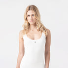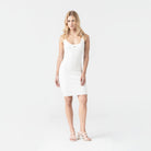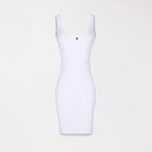 Vestido tejido elaborado en una silueta basica con una base textil acanalada la cual permite que se te ajuste al cuerpo brindando conffort, elegancia y versatilidad a la prenda. Carla esta acompañada de una fina placa metalica contramarcada con el icono logo insignia en frente y un bordado clasico en espalda ideal para un look casual o distintas ocasiones de uso.