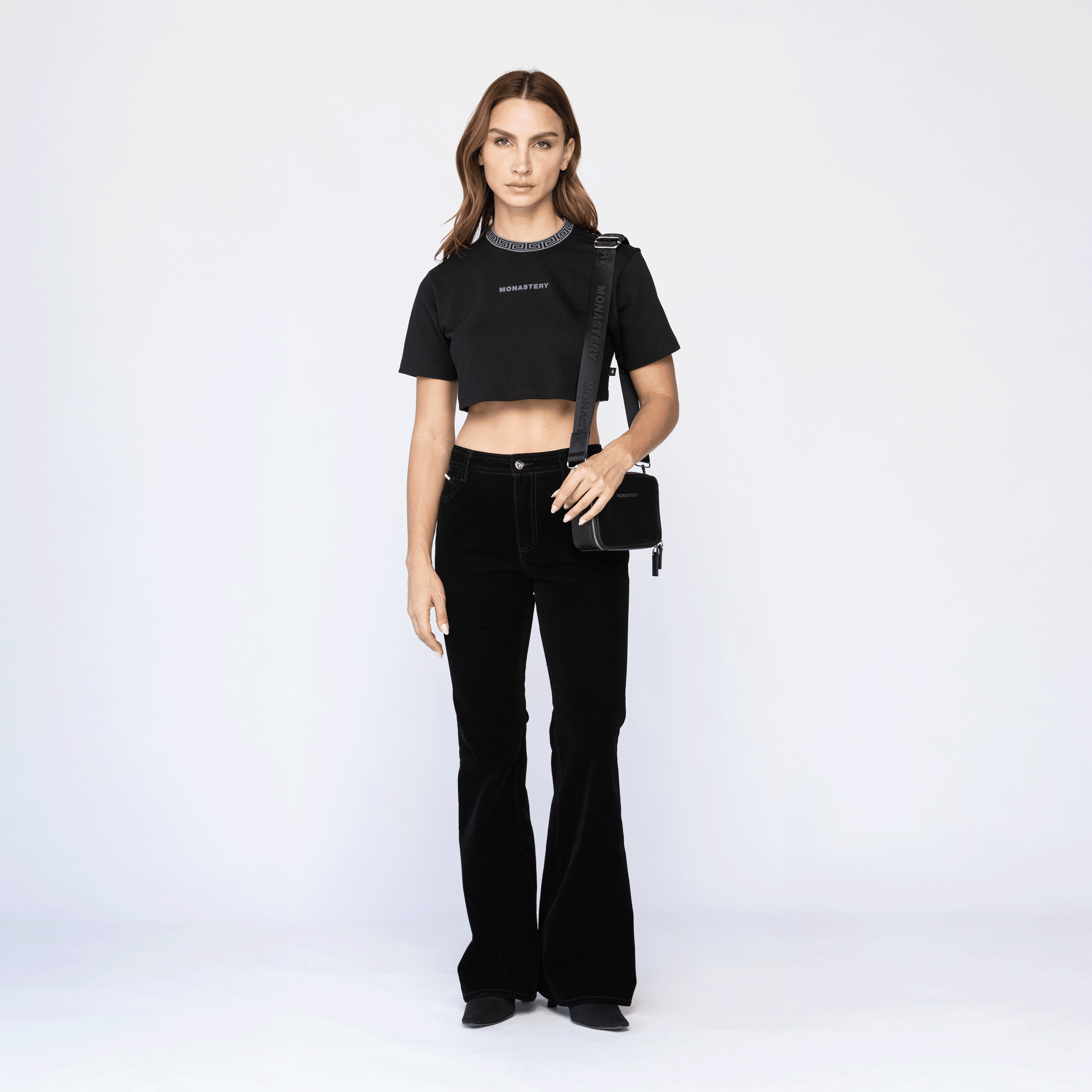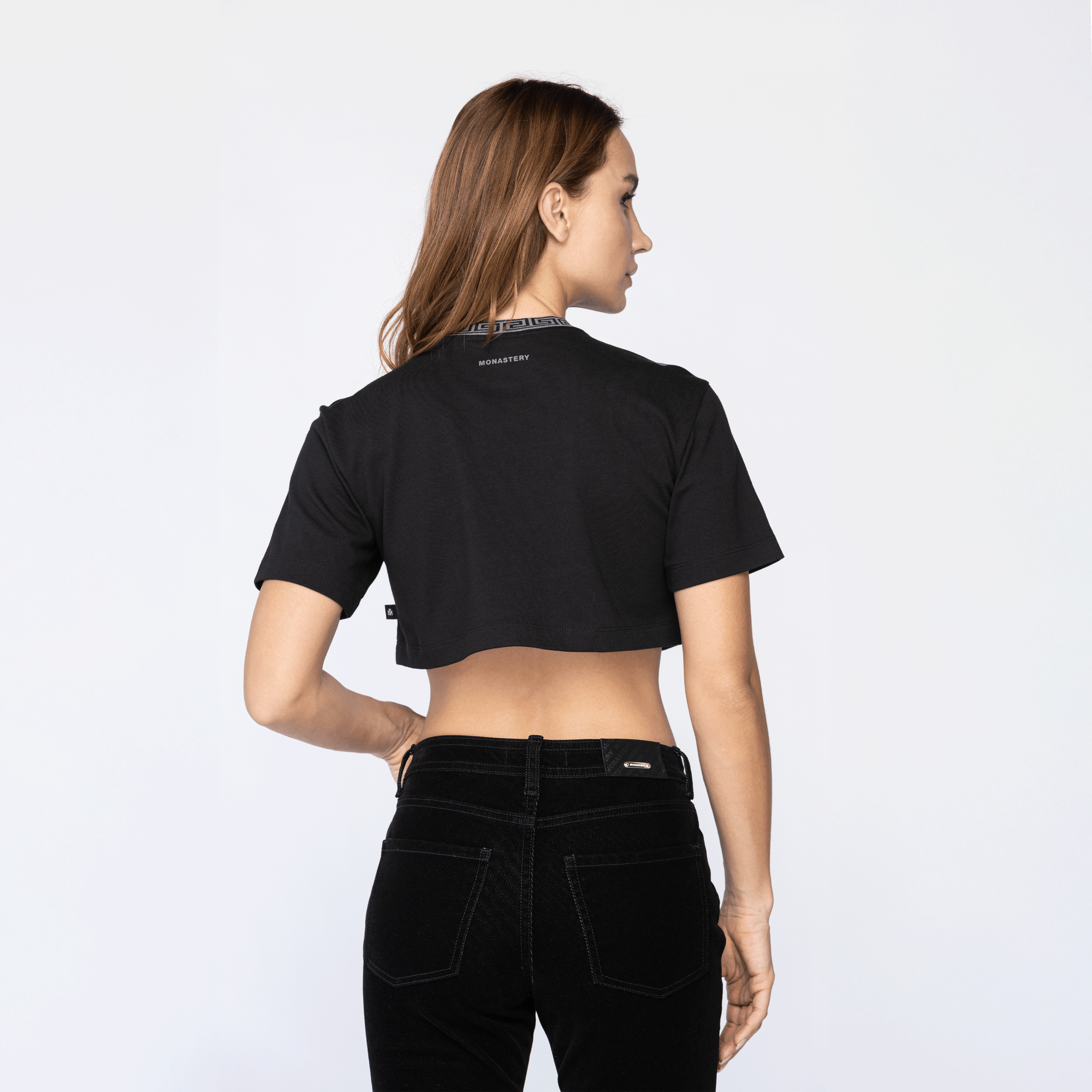 Crop top femenino en algodón 100% exclusivo para Monastery, silueta pequeña.
