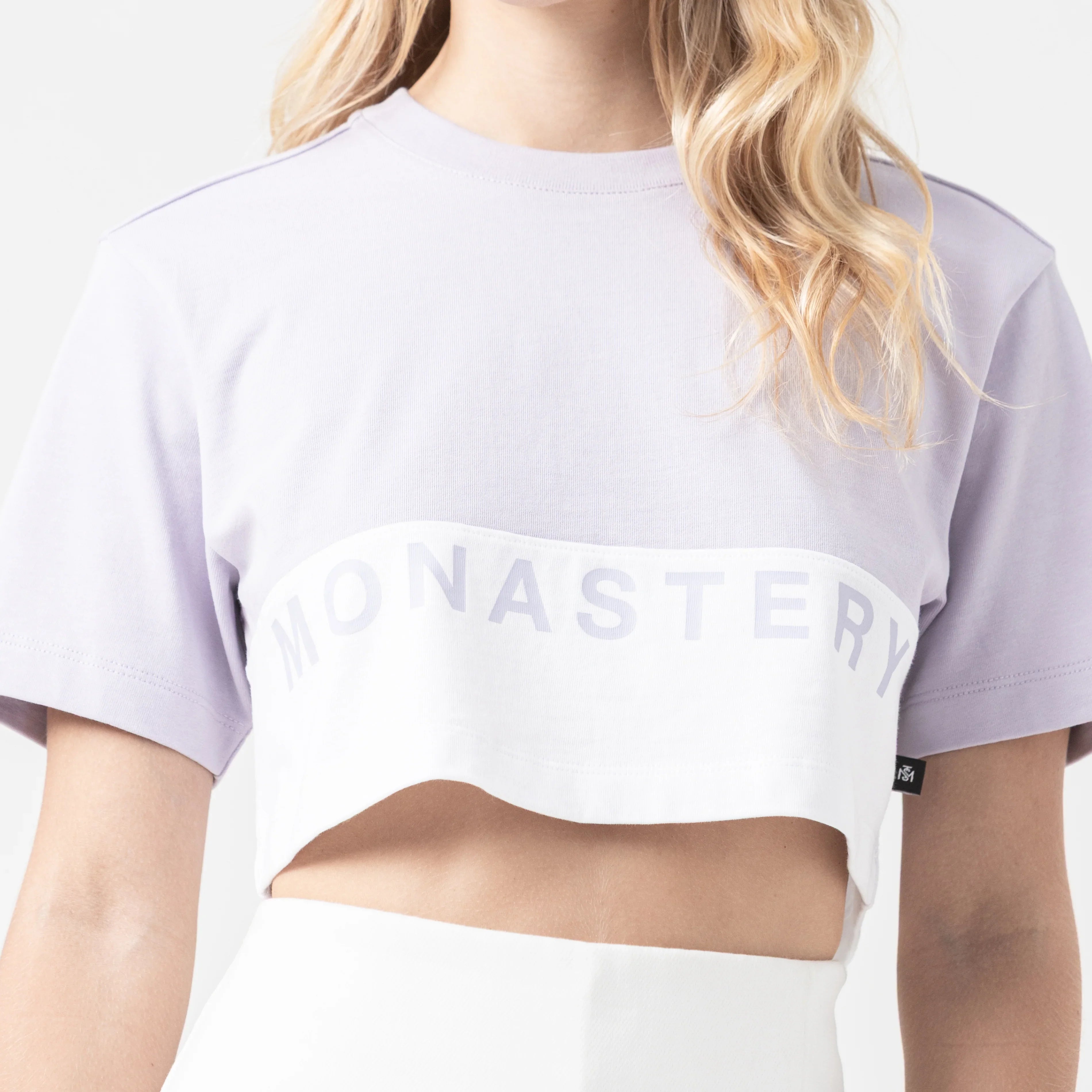 Crop top para mujer en algodón peruano exclusivo para Monastery, elaborada en silueta pequeña,cuenta con corte en frente a la altura de la siza, presenta el icónico logo Monastery estampado plano en frente inferior al corte y en espalda logos insignias en estampado plano. Arwen es una prenda dinámica aportando elegancia y versatilidad a tu vestuario.