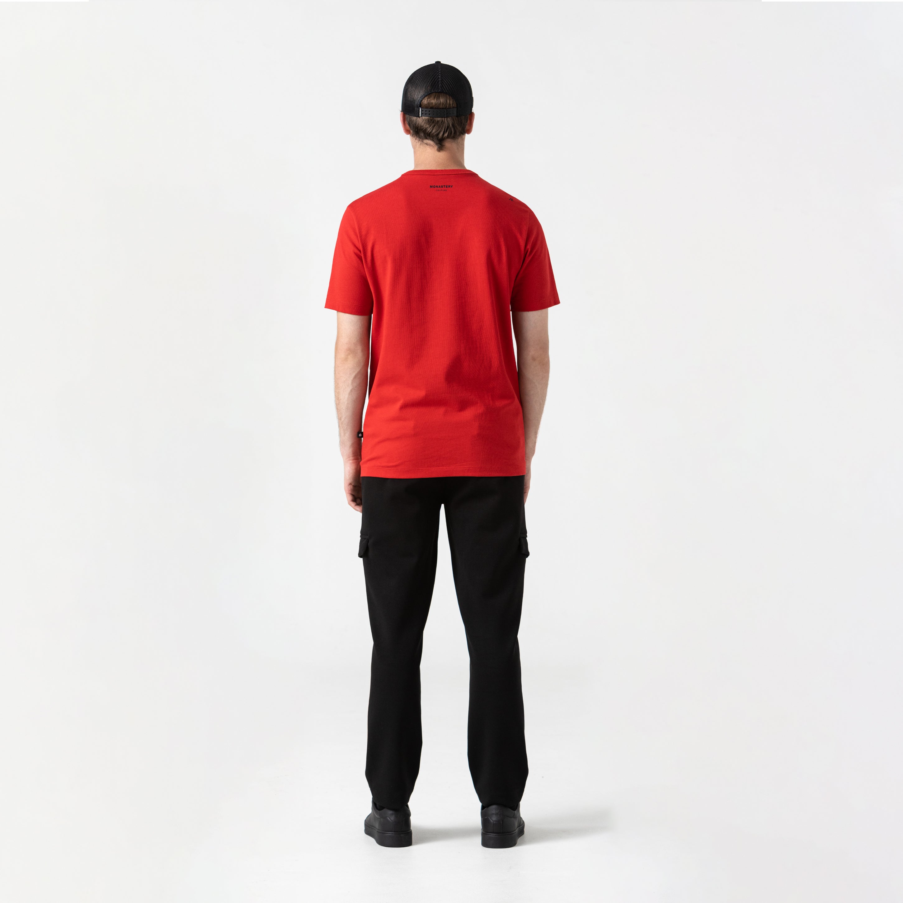 Diseñada para quienes aprecian el detalle gráfico y la calidad en los acabados. Confeccionada en tela Monastery, ofrece una textura suave, resistente y de excelente caída. Su diseño incorpora un cuello en rib de 2.5 cm, que aporta estructura y definición al contorno. La gráfica combina dos técnicas que se complementan: un estampado en alta densidad, que aporta textura y volumen, junto a un plastisol plano, que equilibra con precisión y nitidez visual. Una prenda que destaca por su carácter gráfico y ejecución impecable —ideal para looks con estilo consciente.