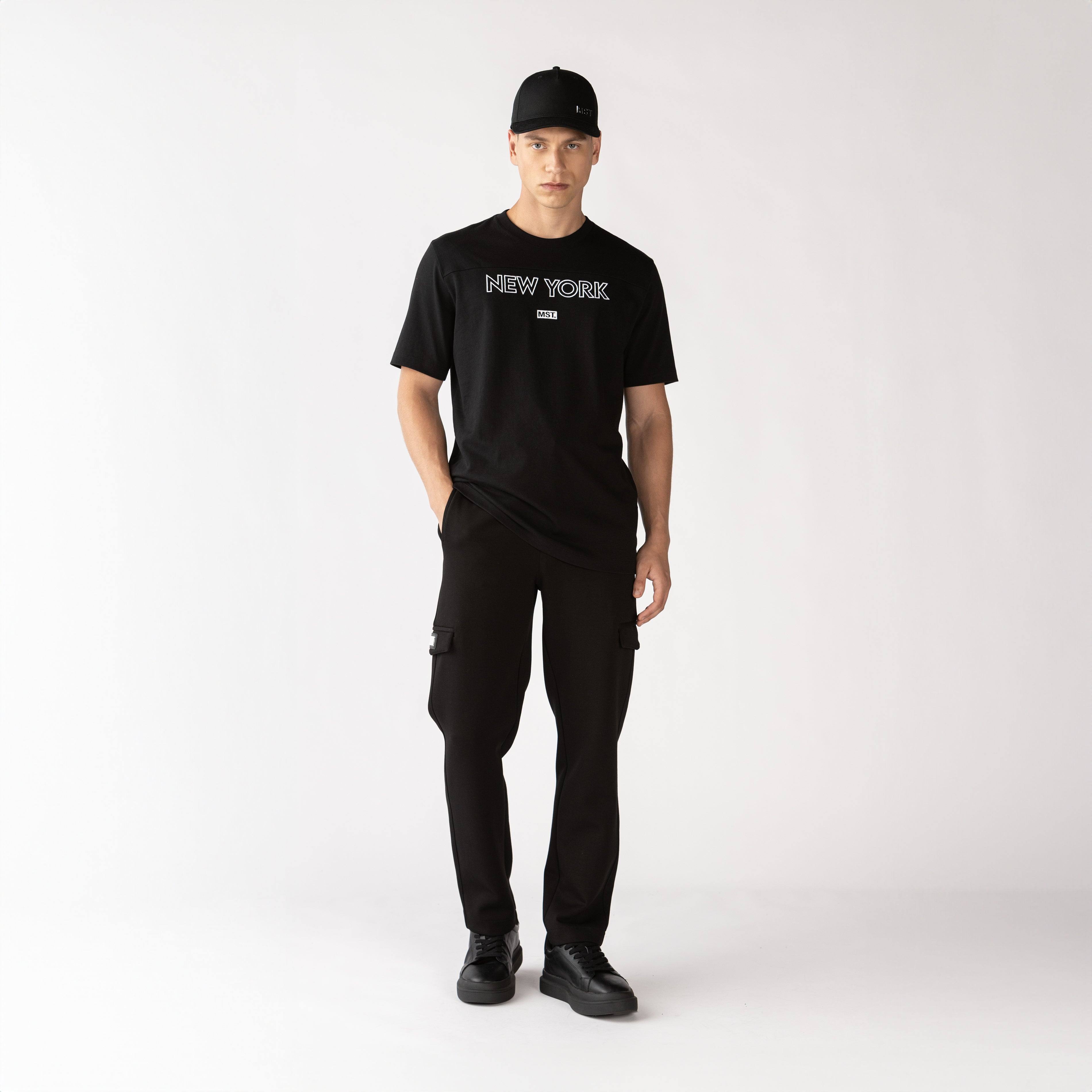 Técnica frente: Bordado 3D en palabra NEW YORK y bordado plano en las demás letras